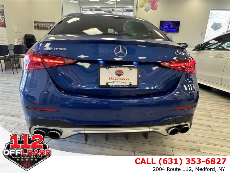 Take a look at this Blue Metallic 2023 Mercedes-Benz C-Class. We have a fast turnover on vehicles listed online. WE OFFER ZERO DOWN FINANCING WITH QUALIFIED CREDIT. Customer satisfaction and selling quality pre-owned vehicles are always our main priority. Please note- Advertised price is a balance owed after a 20% down payment and does not include Tax, Title, Inspection or finance charges. Must finance through one of the dealer's many lenders or we are accepting cash OFFERS. All of our handpicked vehicles go through 145 point inspection performed by our licensed certified technicians, therefore all vehicles have been pre certified at an additional cost of $695. *Sorry but no 2 offers can be combined Pre owned cars serving Suffolk County We Are The Nissan dealer near me We have over 1000 Pre owned Cars Trucks Pickups SUV CUV in our Tantillo Auto Group Long island Used Cars your Nissan Dealer near me Nissan 112 serves South Hampton East Hampton Patchogue Medford We are also Credit experts No Social Tax ID no Credit Bad Credit Nissan 112. 4MATICr. Blue Metallic 2023 Mercedes-Benz C-Class C 43 AMGr 4MATICr 4MATICr 9-Speed Automatic I4