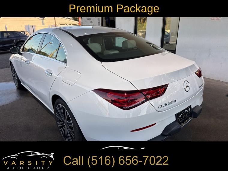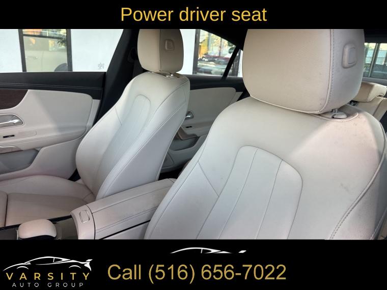 Premium Package, 8 Speakers, AM/FM radio, Radio data system, Radio: MBUX Multimedia System, SiriusXM Satellite Radio, Air Conditioning, Automatic temperature control, Front dual zone A/C, Rear window defroster, Garage Door Opener, Memory seat, Power driver seat, Power steering, Power windows, Remote keyless entry, Steering wheel mounted audio controls, Four wheel independent suspension, Speed-sensing steering, Traction control, 4-Wheel Disc Brakes, ABS brakes, Child-Seat-Sensing Airbag, Dual front impact airbags, Dual front side impact airbags, Emergency communication system: eCall Emergency System, Front anti-roll bar, HANDS-FREE ACCESS, KEYLESS GO®, Knee airbag, Low tire pressure warning, Occupant sensing airbag, Overhead airbag, Rear anti-roll bar, Power moonroof, Brake assist, Electronic Stability Control, Exterior Parking Camera Rear, Delay-off headlights, Fully automatic headlights, Rear fog lights, Panic alarm, Security system, Speed control, Auto-Dimming Rearview & Driver-Side Mirrors, Bumpers: body-color, Heated door mirrors, Power door mirrors, Power Folding Side Mirrors, Turn signal indicator mirrors, 10.25" Digital Instrument Cluster, 10.25" Media Display w/Touchscreen, Apple CarPlay®/Android Auto®, Driver door bin, Driver vanity mirror, First Aid Kit, Front reading lights, Heated Steering Wheel, Illuminated entry, Outside temperature display, Overhead console, Passenger vanity mirror, Rear reading lights, Rear seat center armrest, Tachometer, Telescoping steering wheel, Tilt steering wheel, Trip computer, Front Bucket Seats, Front Center Armrest, Front Sport Seats, Heated Front Seats, MB-Tex Leatherette Seat Trim, MB-Tex/DINAMICA Upholstery, Power passenger seat, Split folding rear seat, Passenger door bin, 18" Multi-Spoke Alloy Wheels, Alloy wheels, Rain sensing wipers, Variably intermittent wipers, Mercedes-Benz CLA 250 4MATIC, Polar White, Macchiato Beige w/MB-Tex Leatherette Seat Trim, Clean CARFAX