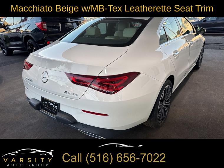 Mercedes-Benz CLA 250 4MATIC, Polar White, Macchiato Beige w/MB-Tex Leatherette Seat Trim, Premium Package, Clean CARFAX, 10.25" Digital Instrument Cluster, 10.25" Media Display w/Touchscreen, 18" Multi-Spoke Alloy Wheels, 4-Wheel Disc Brakes, 8 Speakers, ABS brakes, Air Conditioning, Alloy wheels, AM/FM radio, Apple CarPlay®/Android Auto®, Auto-Dimming Rearview & Driver-Side Mirrors, Automatic temperature control, Brake assist, Bumpers: body-color, Child-Seat-Sensing Airbag, Delay-off headlights, Driver door bin, Driver vanity mirror, Dual front impact airbags, Dual front side impact airbags, Electronic Stability Control, Emergency communication system: eCall Emergency System, Exterior Parking Camera Rear, First Aid Kit, Four wheel independent suspension, Front anti-roll bar, Front Bucket Seats, Front Center Armrest, Front dual zone A/C, Front reading lights, Front Sport Seats, Fully automatic headlights, Garage Door Opener, HANDS-FREE ACCESS, Heated door mirrors, Heated Front Seats, Heated Steering Wheel, Illuminated entry, KEYLESS GO®, Knee airbag, Low tire pressure warning, MB-Tex Leatherette Seat Trim, MB-Tex/DINAMICA Upholstery, Memory seat, Occupant sensing airbag, Outside temperature display, Overhead airbag, Overhead console, Panic alarm, Passenger door bin, Passenger vanity mirror, Power door mirrors, Power driver seat, Power Folding Side Mirrors, Power moonroof, Power passenger seat, Power steering, Power windows, Premium Package, Radio data system, Radio: MBUX Multimedia System, Rain sensing wipers, Rear anti-roll bar, Rear fog lights, Rear reading lights, Rear seat center armrest, Rear window defroster, Remote keyless entry, Security system, SiriusXM Satellite Radio, Speed control, Speed-sensing steering, Split folding rear seat, Steering wheel mounted audio controls, Tachometer, Telescoping steering wheel, Tilt steering wheel, Traction control, Trip computer, Turn signal indicator mirrors, Variably intermittent wipers. Polar White 2023 Mercedes-Benz CLA 250 4MATIC® 4MATIC® 7-Speed Automatic 2.0L I4 Turbocharged Odometer is 8102 miles below market average! 24/33 City/Highway MPG