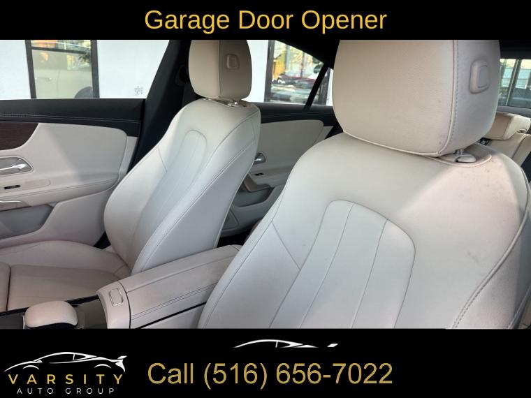 Premium Package, 8 Speakers, AM/FM radio, Radio data system, Radio: MBUX Multimedia System, SiriusXM Satellite Radio, Air Conditioning, Automatic temperature control, Front dual zone A/C, Rear window defroster, Garage Door Opener, Memory seat, Power driver seat, Power steering, Power windows, Remote keyless entry, Steering wheel mounted audio controls, Four wheel independent suspension, Speed-sensing steering, Traction control, 4-Wheel Disc Brakes, ABS brakes, Child-Seat-Sensing Airbag, Dual front impact airbags, Dual front side impact airbags, Emergency communication system: eCall Emergency System, Front anti-roll bar, HANDS-FREE ACCESS, KEYLESS GO®, Knee airbag, Low tire pressure warning, Occupant sensing airbag, Overhead airbag, Rear anti-roll bar, Power moonroof, Brake assist, Electronic Stability Control, Exterior Parking Camera Rear, Delay-off headlights, Fully automatic headlights, Rear fog lights, Panic alarm, Security system, Speed control, Auto-Dimming Rearview & Driver-Side Mirrors, Bumpers: body-color, Heated door mirrors, Power door mirrors, Power Folding Side Mirrors, Turn signal indicator mirrors, 10.25" Digital Instrument Cluster, 10.25" Media Display w/Touchscreen, Apple CarPlay®/Android Auto®, Driver door bin, Driver vanity mirror, First Aid Kit, Front reading lights, Heated Steering Wheel, Illuminated entry, Outside temperature display, Overhead console, Passenger vanity mirror, Rear reading lights, Rear seat center armrest, Tachometer, Telescoping steering wheel, Tilt steering wheel, Trip computer, Front Bucket Seats, Front Center Armrest, Front Sport Seats, Heated Front Seats, MB-Tex Leatherette Seat Trim, MB-Tex/DINAMICA Upholstery, Power passenger seat, Split folding rear seat, Passenger door bin, 18" Multi-Spoke Alloy Wheels, Alloy wheels, Rain sensing wipers, Variably intermittent wipers, The Price you See, is the Price You Pay!!!, Mercedes-Benz CLA 250 4MATIC, Polar White, Macchiato Beige w/MB-Tex Leatherette Seat Trim, Clean CARFAX