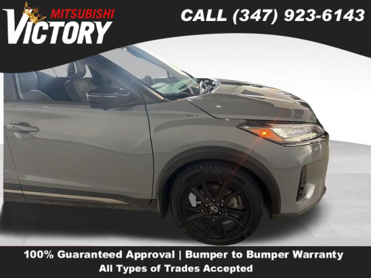 2023 Nissan Kicks SR Boulder Gray Pearl 4D Sport Utility Save yourself Time and Money - Fill out a credit application online at victorymitsubishi.com and get pre-APPROVED! Financing available for all types of credit with low monthly payment that will fit you budget. Down Payment low as $599. Same day delivery. View our entire inventory by visiting our virtual showroom at victorymitsubishi.com - Only 2 blocks away from Exit 13 off I-95 or Minutes from exit 7 on the Hutchinson Parkway. While we make every effort to ensure the data listed here is correct, there may be instances where the pricing, options or vehicle features may be listed incorrectly. Dealer cannot be held liable for data that is listed incorrectly. to see more pictures of this vehicle or call us at (347) 923-6143 today to schedule your test drive. please refer to dealer’s website for exact pricing and for any incentives that we may apply! Our address is 4070 Boston Road, Bronx, NY 10475.