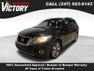 Welcome to Victory Mitsubishi! We offer a combined inventory of 700 cars new and luxury used vehicles. All Used vehicles come with a quality assurance inspection, our New Vehicles have an unprecedented 10-year 100k mile warranty we also have vehicles car for any want or purpose. Come into test drive this car for any want or purpose. Come in to test drive this Nissan Pathfinder Platinum today! Priced below KBB Fair Purchase Price! *.