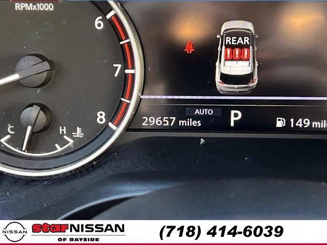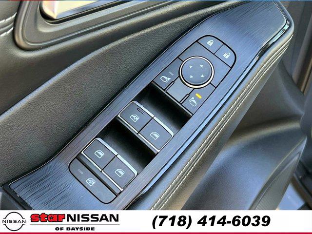 CHARCOAL LEATHER-APPOINTED SEAT TRIM, [L93] FLOOR MATS W/2-PIECE CARGO AREA PROTECTOR -inc: seatback protector First Aid Kit, BOULDER GRAY PEARL, [N94] FRAMELESS REARVIEW MIRROR W/UNIVERSAL REMOTE, [P02] SL PREMIUM PACKAGE -inc: Rear Door Sunshades Traffic Sign Recognition Motion Activated Power Liftgate Tri-Zone HVAC ProPILOT Assist w/Navi-link Front Side & Rear Sonar 12 sensors Radio: AM/FM NissanConnect w/Navigation 9 color display w/multi-touch control Nissan door to door navigation w/3D building graphics and satellite imagery featuring online POI search and online premium traffic information s Alexa built in SiriusXM Traffic (subscription required) SiriusXM Travel Link (subscription required) NissanConnect featuring Apple CarPlay and Bluetooth Bose Premium Audio System 10-speakers including dual driver subwoofer, [B93] CHROME REAR BUMPER PROTECTOR, [N92] ILLUMINATED KICK PLATES, [B92] BLACK SPLASH GUARDS (SET OF 4), Turbocharged, All Wheel Drive, Power Steering, ABS, 4-Wheel Disc Brakes, Brake Assist, Brake Actuated Limited Slip Differential, Aluminum Wheels, Tires - Front Performance, Tires - Rear Performance, Temporary Spare Tire, Sun/Moonroof, Generic Sun/Moonroof, Panoramic Roof, Heated Mirrors, Power Mirror(s), Integrated Turn Signal Mirrors, Rear Defrost, Privacy Glass, Intermittent Wipers, Variable Speed Intermittent Wipers, Rear Spoiler, Remote Trunk Release, Power Liftgate, Power Door Locks, Daytime Running Lights, Automatic Headlights, LED Headlights, Automatic Highbeams, AM/FM Stereo, Satellite Radio, Bluetooth Connection, WiFi Hotspot, Smart Device Integration, Requires Subscription, MP3 Capability, Steering Wheel Audio Controls, Auxiliary Audio Input, Bluetooth Connection, Power Driver Seat, Power Passenger Seat, Bucket Seats, Heated Front Seat(s), Driver Adjustable Lumbar, Seat Memory, Pass-Through Rear Seat, Rear Bench Seat, Adjustable Steering Wheel, Trip Computer, Power Windows, WiFi Hotspot, Leather Steering Wheel, Heated Steering Wheel, Keyless Entry, Power Door Locks, Keyless Entry, Power Door Locks, Keyless Start, Cruise Control, Adaptive Cruise Control, Climate Control, Multi-Zone A/C, A/C, Leather Seats, Driver Vanity Mirror, Passenger Vanity Mirror, Driver Illuminated Vanity Mirror, Passenger Illuminated Visor Mirror, Auto-Dimming Rearview Mirror, Smart Device Integration, Remote Engine Start, Keyless Start, Mirror Memory, Seat Memory, Power Windows, Power Door Locks, Trip Computer, Mirror Memory, Seat Memory, Immobilizer, Security System, Cruise Control Steering Assist, Traction Control, Stability Control, Traction Control, Front Side Air Bag, Rear Parking Aid, Cross-Traffic Alert, Rear Collision Mitigation, Front Collision Mitigation, Driver Monitoring, Telematics, Requires Subscription, Blind Spot Monitor, Lane Departure Warning, Lane Keeping Assist, Lane Departure Warning, Aerial View Display System, Tire Pressure Monitor, Driver Air Bag, Passenger Air Bag, Front Head Air Bag, Rear Head Air Bag, Passenger Air Bag Sensor, Front Side Air Bag, Rear Side Air Bag, Knee Air Bag, Child Safety Locks, Back-Up Camera