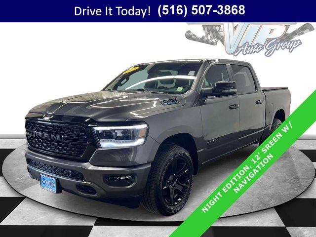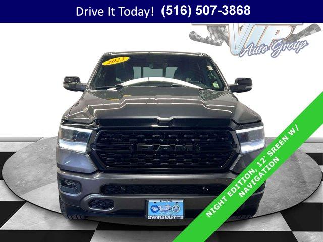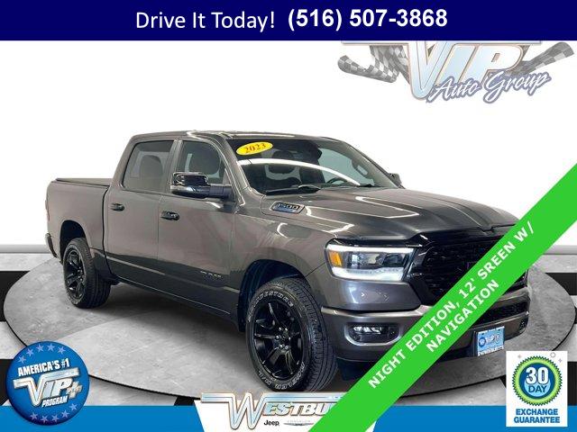 Certified capability meets everyday comfort in this 2023 Ram 1500 4D Crew Cab with 4WD, built to handle jobsite demands and family duty with equal ease. Finished in Granite Crystal Metallic Clearcoat with a black cloth interior, it delivers a refined ride, quiet cabin, and smart versatility that suits life in the Northeast. The 3.6L V6 paired to an 8-speed automatic provides smooth, confident power, while the Anti-Spin Differential Rear Axle and 3.21 rear axle ratio help balance traction and highway efficiency. Big Horn styling with the Night Edition and Premium Lighting Group adds body color bumpers, black badging, LED headlamps, LED fog lamps, and LED taillamps for a modern, purposeful look.Inside, you get comfort that makes every commute or weekend haul easier. Heated front seats and a heated steering wheel take the edge off cold mornings. The 12 inch touchscreen multimedia display with Uconnect 5 Nav brings GPS Navigation, Apple CarPlay, Google Android Auto, HD Radio, SiriusXM with 360L, Connected Travel & Traffic Services, and a 4G LTE Wi-Fi Hot Spot together in one intuitive hub. A 9-speaker amplified audio system with subwoofer elevates your playlist, and steering wheel media controls keep your focus on the road. Convenience is built in with Remote Start, dual zone automatic temperature control, a power 8-way driver seat with 2-way lumbar, power adjustable pedals, a rear power sliding window, 115V auxiliary power outlet, 400W inverter, Universal Garage Door Opener, and more.Confidence comes standard with ParkSense Front and Rear Park Assist with Stop and the ParkView Rear Back-Up Camera to make tight parking easier. Electronic Stability Control, 4-wheel disc brakes with ABS, auto-dimming mirrors, a security alarm, and the SiriusXM Guardian emergency communication system add reassurance. Practical touches like the 60/40 split-folding rear seat and in-floor second-row storage bins keep tools and gear organized. A Class IV receiver hitch is ready for towing when the day calls for it.With 24,431 miles, this Ram 1500 has been lightly driven and shows low miles for its age, a smart pick if you want long-term value without the new-truck price. The 48V Belt Starter Generator enhances stop-start smoothness and helps deliver responsive launches, a real plus for city streets and crowded lots in NY.VIP+ ProgramEvery purchase includes our VIP+ Program with Unlimited Oil and Filter changes for 1 year, then included with every factory maintenance thereafter, plus Complimentary NYS Inspections, Complimentary Loaner Cars, and Complimentary 24/7 Rescue and Towing. These benefits are For Life and Transferable, adding long-term value to your ownership.Purchase With ConfidenceThis Certified Pre-Owned Vehicle (CPOV) delivers added assurance backed by Ram, including a 7-Year / 100,000-Mile Powertrain Limited Warranty, a thorough 125-Point Inspection, 24-Hour Roadside Assistance, Rental Car Allowance, and a CARFAX Vehicle History Report. If you have been searching for a certified Ram 1500 that checks all the boxes, this is the used truck in New York that stands out.More About UsOur vehicles are hand selected for quality and long-term reliability, and comprehensive reconditioning is completed before sale so you can purchase with confidence. Certified vehicles meet strict standards, including brake life no less than 50 percent, to help ensure safety and durability from day one. We emphasize trust, preparation, and peace of mind in every interaction. As a proud member of the VIP Auto Group serving the community since 1957, we live our promise: We Will Satisfy You!From weekday commuting to winter road trips, this Ram?s 4WD traction, heated amenities, advanced parking aids, and LED lighting deliver commuter-friendly comfort, cold-weather confidence, safety, and long-term value. If you?re looking for a used car on Long Island or need a capable truck that works hard and cleans up nice for nights out, this Big Horn is ready.If you are comparing an affordable used car or a used truck in New York, call now to learn more, schedule a test drive, or get today?s best price. Visit WestburyJeep.com to see up-to-date inventory and current pricing. Vehicle features and description are intended as a general overview and may vary by vehicle. Please verify exact equipment prior to purchase.