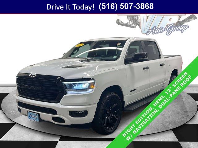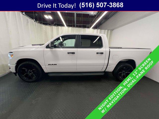 One owner. Bright White Clearcoat exterior and Black interior, Laramie trim. Ram Certified. Heated/Cooled Leather Seats, Sunroof, NAV, Back-Up Camera, 4x4, Alloy Wheels, Tow Hitch, BLACK, LEATHER TRIMMED BUCKET SEATS , ENGINE: 5.7L V8 HEMI MDS VVT ETORQUE, ANTI-SPIN DIFFERENTIAL REAR AXLE, TRANSMISSION: 8-SPEED AUTOMATIC (8HP7. NIGHT EDITION, LARAMIE LEVEL B EQUIPMENT GROUP, DUAL-PANE PANORAMIC SUNROOF.PURCHASE WITH CONFIDENCE24-Hour Towing and Roadside Assistance, Car Rental Allowance, 7-Year/100,000-Mile Powertrain Limited Warranty, 3-Month introductory subscription to SiriusXM Satellite Radio, CARFAX Vehicle History Report, 3-Month/3,000-Mile Maximum Care Coverage Approx. Original Base Sticker Price: $57,000*.KEY FEATURES INCLUDE4x4, Heated Driver Seat, Cooled Driver Seat, Back-Up Camera, iPod/MP3 InputOPTION PACKAGESLARAMIE LEVEL B EQUIPMENT GROUP Rear Window Defroster, Blind Spot & Cross Path Detection, Rain Sensitive Windshield Wipers, ParkSense Front/Rear Park Assist w/Stop, Rear Power Sliding Window, 12 Touchscreen Display, Rear Underseat Compartment Storage, Front LED Fog Lamps, LED Reflector Headlamps, Foam Bottle Insert (Door Trim Panel), Radio: Uconnect 5 Nav w/12.0 Display, Remote Tailgate Release, harman/kardonĀ® 19 Speaker Premium Sound, Auto High Beam Headlamp Control, Electric Shift On Demand Transfer Case, Front Door Accent Lighting, 2nd Row In Floor Storage Bins, Rear Door Accent Lighting, NIGHT EDITION Accent Color Premium Power Mirrors, Black Headlamp Bezels, Sport Performance Hood, Wheels: 22 x 9 Forged Aluminum, Tires: 285/45R22XL BSW All Season, Black Exterior Truck Badging, Accent Color Door Handles, Black Interior Accents, Dual Exhaust w/Black Tips, Body Color Front Bumper, Grille Surround 3 Black Texture 2 Black, Body Color Rear Bumper w/Step Pads, RAM Grille Badge - Black, Black Painted Exterior Mirrors Caps, ENGINE: 5.7L V8 HEMI MDS VVT ETORQUE Active Noise Control System, Heavy Duty Engine Cooling, Passive Tuned Mass Damper, GVWR: 7,100 lbs, Dual Rear Exhaust w/Bright Tips, HEMI Badge, 23 Gallon Fuel Tank, 18 Aluminum Spare Wheel, DUAL-PANE PANORAMIC SUNROOF LED Dome/Reading Lamp, Dome Dual LED Reading Lamp, BLACK, LEATHER TRIMMED BUCKET SEATS Bucket Seats, Center Console Parts Module, Full Length Upgraded Floor Console, TRANSMISSION: 8-SPEED AUTOMATIC (8HP75) Ram Laramie with Bright White Clearcoat exterior and Black interior features a 8 Cylinder Engine with 395 HP at 5600 RPM*.EXPERTS RAVEGreat Gas Mileage: 22 MPG Hwy.WHO WE AREWe hand select the finest automobiles possible, recondition as required so you do not have to worry about anything shortly down the road. Our Certified vehicles for example all have more than 50% brake life, most have brand new brakes installed front and rear and it does not end there.WESTBURY VIPAmericas #1 VIP Plus Program includes Complimentary Loaner Cars, UnlimitedOil & Filter changes for 1 yr. & then included with every factorymaintenance, Courtesy Shuttle to work, home or any other location, ExpressLube 30 minutes or less w/ no appointment necessary, Complimentary NYSI, 24/7 Rescue & Towing.