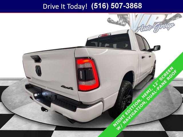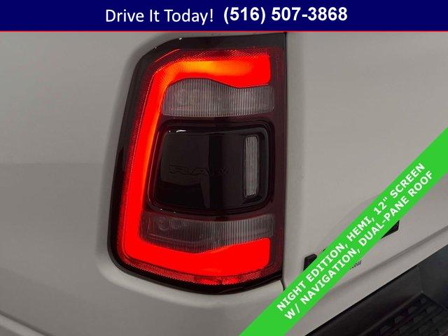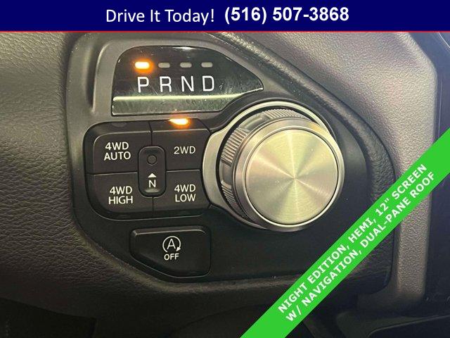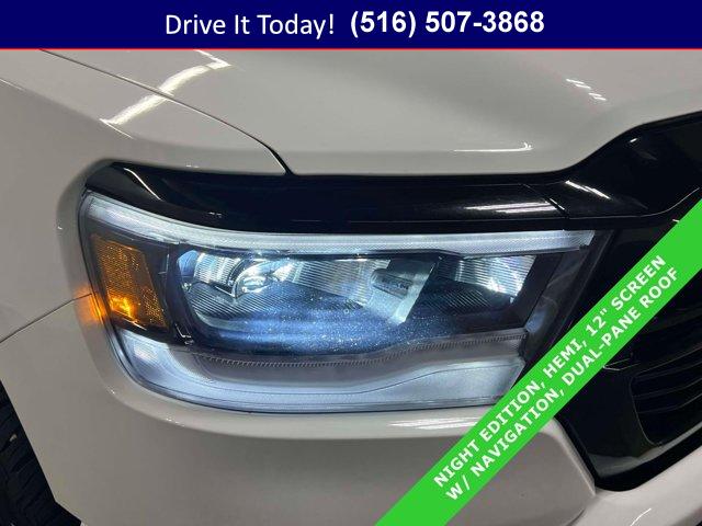 BRIGHT WHITE CLEARCOAT, ENGINE: 5.7L V8 HEMI MDS VVT ETORQUE -inc: Active Noise Control System Heavy Duty Engine Cooling Passive Tuned Mass Damper GVWR: 7 100 lbs Dual Rear Exhaust w/Bright Tips HEMI Badge 23 Gallon Fuel Tank 18 Aluminum Spare Wheel, REAR UNDERSEAT COMPARTMENT STORAGE, PARKSENSE FRONT/REAR PARK ASSIST W/STOP, GVWR: 7 100 LBS, WHEELS: 22 X 9 FORGED ALUMINUM -inc: Tires: 285/45R22XL BSW All Season, DUAL-PANE PANORAMIC SUNROOF -inc: LED Dome/Reading Lamp Dome Dual LED Reading Lamp, RADIO: UCONNECT 5 NAV W/12.0 DISPLAY, TRANSMISSION: 8-SPEED AUTOMATIC (8HP75), MOPAR FRONT & REAR RUBBER FLOOR MATS, LARAMIE LEVEL B EQUIPMENT GROUP -inc: Rear Window Defroster Blind Spot & Cross Path Detection Rain Sensitive Windshield Wipers ParkSense Front/Rear Park Assist w/Stop Rear Power Sliding Window 12 Touchscreen Display Rear Underseat Compartment Storage Front LED Fog Lamps LED Reflector Headlamps Foam Bottle Insert (Door Trim Panel) Radio: Uconnect 5 Nav w/12.0 Display Remote Tailgate Release harman/kardon 19 Speaker Premium Sound Auto High Beam Headlamp Control Electric Shift On Demand Transfer Case Front Door Accent Lighting 2nd Row In Floor Storage Bins Rear Door Accent Lighting, QUICK ORDER PACKAGE 27H LARAMIE -inc: Engine: 5.7L V8 HEMI MDS VVT eTorque Transmission: 8-Speed Automatic (8HP75), NIGHT EDITION -inc: Accent Color Premium Power Mirrors Black Headlamp Bezels Sport Performance Hood Wheels: 22 x 9 Forged Aluminum Tires: 285/45R22XL BSW All Season Black Exterior Truck Badging Accent Color Door Handles Black Interior Accents Dual Exhaust w/Black Tips Body Color Front Bumper Grille Surround 3 Black Texture 2 Black Body Color Rear Bumper w/Step Pads RAM Grille Badge - Black Black Painted Exterior Mirrors Caps, BLACK LEATHER TRIMMED BUCKET SEATS -inc: Bucket Seats Center Console Parts Module Full Length Upgraded Floor Console, 3.21 REAR AXLE RATIO (STD), FRONT LICENSE PLATE BRACKET, ANTI-SPIN DIFFERENTIAL REAR AXLE, TIRES: 285/45R22XL BSW ALL SEASON
