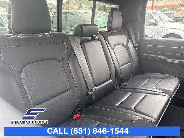 GPS Navigation, Navigation System, Laramie Level B Equipment Group, Quick Order Package 27H Laramie, Trailer Tow Group, 10 Speakers, AM/FM radio: SiriusXM with 360L, Audio memory, GPS Antenna Input, harman/kardon 19 Speaker Premium Sound, HD Radio, Integrated Center Stack Radio, Radio data system, Radio: Uconnect 5 Nav w/12.0" Display, Radio: Uconnect 5 Nav w/8.4" Display, SiriusXM Radio Service, SiriusXM w/360L, Air Conditioning, Automatic temperature control, Front dual zone A/C, Rear Window Defroster, Driver Seat Memory, Exterior Mirrors w/Memory, Memory seat, Pedal memory, Power driver seat, Power steering, Power windows, Rear 60/40 Folding Seat, Rear Power Sliding Window, Remote keyless entry, Steering wheel mounted audio controls, Traction control, 4-Wheel Disc Brakes, ABS brakes, Dual front impact airbags, Dual front side impact airbags, Front anti-roll bar, Front wheel independent suspension, Low tire pressure warning, Occupant sensing airbag, Overhead airbag, Rear anti-roll bar, Remote Tailgate Release, Blind Spot & Cross Path Detection, Brake assist, Electronic Stability Control, ParkView Rear Back-Up Camera, Delay-off headlights, Front fog lights, Fully automatic headlights, Panic alarm, Security system, Speed control, Electric Shift-On-Demand Transfer Case, 48V Belt Starter Generator, Auto High Beam Headlamp Control, Auto-dimming door mirrors, Auto-Dimming Exterior Driver Mirror, Bumpers: chrome, Chrome Exterior Mirrors, Chrome Power-Fold Trailer Tow Mirrors (DISC), Convex Wide-Angle Exterior Mirror Insert, Exterior Mirrors Courtesy Lamps, Exterior Mirrors w/Heating Element, Exterior Mirrors w/Supplemental Signals, For More Info, Call 800-643-2112, Front LED Fog Lamps, Front License Plate Bracket, Heated door mirrors, LED Reflector Headlamps, Mirror Clearance/Running Lights, Mirror-Mounted Aux Reverse Lamps, Power door mirrors, Power-Folding Mirrors, RAM Grille Badge - Chrome, Rear step bumper, Rear Wheelhouse Liners, Trailer Tow Mirrors, Turn signal indicator mirrors, USB Host Flip, #1 Seat Foam Cushion, 12" Touchscreen Display, 2nd Row In Floor Storage Bins, 4G LTE Wi-Fi Hot Spot, Adjustable pedals, Apple CarPlay, Apple CarPlay/Android Auto, Auto-dimming Rear-View mirror, Compass, Connected Travel & Traffic Services, Connectivity - US/Canada, Disassociated Touchscreen Display, Driver door bin, Driver vanity mirror, Foam Bottle Insert (Door Trim Panel), For Details, Visit DriveUconnect.com, Front Door Accent Lighting, Front reading lights, Garage door transmitter, Global Telematics Box Module (TBM), Google Android Auto, Heated Steering Wheel, Heated steering wheel, Illuminated entry, Integrated Voice Command w/Bluetooth, Leather steering wheel, Outside temperature display, Overhead console, ParkSense Front/Rear Park Assist w/Stop (DISC), Passenger vanity mirror, Rear Door Accent Lighting, Rear seat center armrest, Tachometer, Telescoping steering wheel, Tilt steering wheel, Trip computer, Voltmeter, 3 Rear Seat Head Restraints, 4 Way Front Headrests, Heated Front Seats, Heated front seats, Leather Trim 40/20/40 Bench Seat, Power 2-Way Driver Lumbar Adjust, Power 2-Way Passenger Lumbar Adjust, Power 8-Way Driver & Passenger Seats, Power passenger seat, Split folding rear seat, Ventilated Front Seats, Ventilated front seats, Front Center Armrest w/Storage, Front Seat Back Map Pockets, Passenger door bin, Rear Underseat Compartment Storage, Class IV Receiver Hitch, Trailer Brake Control, Trailer Light Check, Trailer Reverse Steering Control, Trailer Tire Pressure Monitoring System, Alloy wheels, Wheels: 18" x 8" Aluminum Base Painted, Wheels: 20" x 9" Premium Paint/Polished, Rain Sensitive Windshield Wipers, Variably intermittent wipers, * NYS INSPECTION INCLUDED *, * FULL INTERIOR / EXTERIOR DETAIL *, * LIMITED NYS LEMON LAW WARRANTY INCLUDED *, *FRESH OIL CHANGE *, * 150 MULTI POINT INSPECTION *