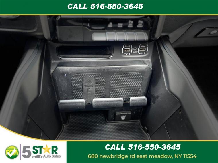 • ABS, 4-Wheel Disc Brakes, 8 Cylinder Engine, 8-Speed A/T, A/C, A/T, Adjustable Pedals, Adjustable Steering Wheel, Security System, Aluminum Wheels, AM/FM Stereo, Transmission w/Dual Shift Mode, Automatic Headlights, Auxiliary Audio Input, Back-Up Camera, Brake Assist, Child Safety Locks, Climate Control, Cooled Front Seat(s), Cruise Control, Daytime Running Lights, Driver Air Bag, Driver Illuminated Vanity Mirror, Driver Adjustable Lumbar, Driver Vanity Mirror, Multi-Zone A/C, Auto-Dimming Rearview Mirror, Stability Control, Fog Lamps, Four Wheel Drive, Front Collision Mitigation, Floor Mats, Conventional Spare Tire, Gasoline/Mild Electric Hybrid, HD Radio, Heated Front Seat(s), Heated Mirrors, Heated Steering Wheel, Integrated Turn Signal Mirrors, Intermittent Wipers, Keyless Entry, Keyless Start, Leather Steering Wheel, Mirror Memory, MP3 Player, Navigation System, Pass-Through Rear Seat, Passenger Air Bag, Passenger Air Bag Sensor, Passenger Illuminated Visor Mirror, Passenger Adjustable Lumbar, Passenger Vanity Mirror, Power Door Locks, Power Mirror(s), Power Driver Seat, Power Folding Mirrors, Power Passenger Seat, Power Steering, Power Windows, Premium Sound System, Privacy Glass, Rear Bench Seat, Rear Head Air Bag, Remote Engine Start, Requires Subscription, Satellite Radio, Seat Memory, Front Side Air Bag, Front Head Air Bag, Smart Device Integration, Steering Wheel Audio Controls, Tire Pressure Monitor, Traction Control, Tow Hitch, Trip Computer, Universal Garage Door Opener, Variable Speed Intermittent Wipers, Immobilizer, WiFi Hotspot, Bluetooth Connection, Woodgrain Interior Trim, Auto Dim Exterior Driver Mirror, Auto On/Off Aero-Composite Halogen Daytime Running Lights Preference Setting Headlamps w/Delay-Off, Black Side Windows Trim, Body-Colored Door Handles, Cargo Lamp w/High Mount Stop Light, Chrome Exterior Mirrors, Chrome Front Bumper w/Chrome Rub Strip/Fascia Accent, Chrome Grille, Chrome Rear Step Bumper, Clearcoat Paint, Convex Wide-Angle Exterior Mirror Insert, Deep Tinted Glass, Exterior Mirrors Courtesy Lamps, Exterior Mirrors w/Heating Element, Exterior Mirrors w/Supplemental Signals, Fixed Rear Window, For More Info, Call 800-643-2112, Front Fog Lamps, Full-Size Spare Tire Stored Underbody w/Crankdown, Galvanized Steel/Aluminum Panels, Laminated Glass, LED Brakelights, Power w/Tilt Down Side Mirrors, Power-Folding Mirrors, RAM Grille Badge - Chrome, Regular Box Style, Steel Spare Wheel, Tailgate Rear Cargo Access, Tailgate/Rear Door Lock Included w/Power Door Locks, Tires: 275/65R18 BSW All Season LRR, USB Host Flip, Variable Intermittent Wipers, Wheels: 18" x 8" Aluminum Base Painted, #1 Seat Foam Cushion, 1 12V DC Power Outlet, 1 12V DC Power Outlet and 2 120V AC Power Outlets, 3 Rear Seat Head Restraints, 4 Way Front Headrests, 4G LTE Wi-Fi Hot Spot, Air Filtration, Analog Appearance, Apple CarPlay, Compass, Connected Travel & Traffic Services, Connectivity - US/Canada, Cruise Control w/Steering Wheel Controls, Day-Night Auto-Dimming Rearview Mirror, Delayed Accessory Power, Disassociated Touchscreen Display, Driver And Passenger Visor Vanity Mirrors w/Driver And Passenger Illumination, Driver Information Center, Driver Seat, Driver Seat Memory, Dual Zone Front Automatic Air Conditioning w/Front Infrared, Exterior Mirrors w/Memory, Fade-To-Off Interior Lighting, FOB Controls -inc: Remote Start, For Details, Visit DriveUconnect.com, Front Center Armrest w/Storage and Rear Center Armrest, Front Facing Vinyl Rear Seat, Front Map Lights, Front Seat Back Map Pockets, Full Carpet Floor Covering -inc: Carpet Front And Rear Floor Mats, Full Cloth Headliner, Garage Door Transmitter, Gauges -inc: Speedometer, Odometer, Voltmeter, Oil Pressure, Engine Coolant Temp, Tachometer, Oil Temperature, Transmission Fluid Temp, Engine Hour Meter, Trip Odometer and Trip Computer, Global Telematics Box Module (TBM), Google Android Auto, GPS Antenna Input, GPS Navigation, Heated Front Seats, Heated Steering Wheel, HVAC -inc: Underseat Ducts and Console Ducts, Illuminated Front Cupholder, Illuminated Locking Glove Box, Instrument Panel Bin, Dashboard Storage, Driver / Passenger And Rear Door Bins and 1st Row Underseat Storage, Integrated Voice Command w/Bluetooth, Interior Trim -inc: Deluxe Sound Insulation, Simulated Wood/Metal-Look Instrument Panel Insert, Simulated Wood/Metal-Look Door Panel Insert, Chrome/Metal-Look Interior Accents and Metal-Look Overhead Console Insert, Leather Steering Wheel, Leather Trim 40/20/40 Bench Seat, Manual Tilt/Telescoping Steering Column, Memory Settings -inc: Audio and Pedals, Metal-Look Gear Shifter Material, Mini Overhead Console, 1 12V DC Power Outlet and 2 120V AC Power Outlets, Outside Temp Gauge, Passenger Seat, Perimeter Alarm, Pickup Cargo Box Lights, Power 1st Row Windows w/Driver And Passenger 1-Touch Up/Down, Power 2-Way Driver Lumbar Adjust, Power 2-Way Passenger Lumbar Adjust, Power 8-Way Driver & Passenger Seats, Power Adjustable Pedals, Power Door Locks w/Autolock Feature, Power Rear Windows, Proximity Key For Doors And Push Button Start, Rear 60/40 Folding Seat, Rear Cupholder, Redundant Digital Speedometer, Remote Keyless Entry w/Integrated Key Transmitter, Illuminated Entry and Panic Button, Seats w/Leatherette Back Material, Sentry Key Immobilizer, Smart Device Remote Engine Start, Trip Computer, Valet Function, Ventilated Front Seats, Vinyl Door Trim Insert, Voice Recorder, 1710# Maximum Payload, 26 Gal. Fuel Tank, 3.21 Rear Axle Ratio, 48V Belt Starter Generator, 50 State Emissions, 730CCA Maintenance-Free Battery, Auto Locking Hubs, Class III Towing Equipment -inc: Hitch and Trailer Sway Control, Electric Power-Assist Steering, Electronic Transfer Case, Engine Auto Stop-Start Feature, Engine Oil Cooler, Engine: 3.6L V6 24V VVT eTorque UPG I, Front And Rear Anti-Roll Bars, GVWR: 6, 900 lbs, HD Shock Absorbers, Lithium Ion Traction Battery 0.43 kWh Capacity, Part-Time Four-Wheel Drive, Regenerative 4-Wheel Disc Brakes w/4-W