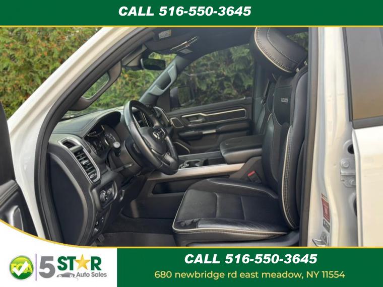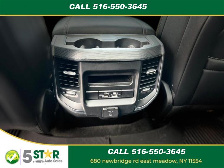 ABS, 4-Wheel Disc Brakes, 8 Cylinder Engine, 8-Speed A/T, A/C, A/T, Adjustable Pedals, Adjustable Steering Wheel, Security System, Aluminum Wheels, AM/FM Stereo, Transmission w/Dual Shift Mode, Automatic Headlights, Auxiliary Audio Input, Back-Up Camera, Brake Assist, Child Safety Locks, Climate Control, Cooled Front Seat(s), Cruise Control, Daytime Running Lights, Driver Air Bag, Driver Illuminated Vanity Mirror, Driver Adjustable Lumbar, Driver Vanity Mirror, Multi-Zone A/C, Auto-Dimming Rearview Mirror, Stability Control, Fog Lamps, Four Wheel Drive, Front Collision Mitigation, Floor Mats, Conventional Spare Tire, Gasoline/Mild Electric Hybrid, HD Radio, Heated Front Seat(s), Heated Mirrors, Heated Steering Wheel, Integrated Turn Signal Mirrors, Intermittent Wipers, Keyless Entry, Keyless Start, Leather Steering Wheel, Mirror Memory, MP3 Player, Navigation System, Pass-Through Rear Seat, Passenger Air Bag, Passenger Air Bag Sensor, Passenger Illuminated Visor Mirror, Passenger Adjustable Lumbar, Passenger Vanity Mirror, Power Door Locks, Power Mirror(s), Power Driver Seat, Power Folding Mirrors, Power Passenger Seat, Power Steering, Power Windows, Premium Sound System, Privacy Glass, Rear Bench Seat, Rear Head Air Bag, Remote Engine Start, Requires Subscription, Satellite Radio, Seat Memory, Front Side Air Bag, Front Head Air Bag, Smart Device Integration, Steering Wheel Audio Controls, Tire Pressure Monitor, Traction Control, Tow Hitch, Trip Computer, Universal Garage Door Opener, Variable Speed Intermittent Wipers, Immobilizer, WiFi Hotspot, Bluetooth Connection, Woodgrain Interior Trim, Auto Dim Exterior Driver Mirror, Auto On/Off Aero-Composite Halogen Daytime Running Lights Preference Setting Headlamps w/Delay-Off, Black Side Windows Trim, Body-Colored Door Handles, Cargo Lamp w/High Mount Stop Light, Chrome Exterior Mirrors, Chrome Front Bumper w/Chrome Rub Strip/Fascia Accent, Chrome Grille, Chrome Rear Step Bumper, Clearcoat Paint, Convex Wide-Angle Exterior Mirror Insert, Deep Tinted Glass, Exterior Mirrors Courtesy Lamps, Exterior Mirrors w/Heating Element, Exterior Mirrors w/Supplemental Signals, Fixed Rear Window, For More Info, Call 800-643-2112, Front Fog Lamps, Full-Size Spare Tire Stored Underbody w/Crankdown, Galvanized Steel/Aluminum Panels, Laminated Glass, LED Brakelights, Power w/Tilt Down Side Mirrors, Power-Folding Mirrors, RAM Grille Badge - Chrome, Regular Box Style, Steel Spare Wheel, Tailgate Rear Cargo Access, Tailgate/Rear Door Lock Included w/Power Door Locks, Tires: 275/65R18 BSW All Season LRR, USB Host Flip, Variable Intermittent Wipers, Wheels: 18" x 8" Aluminum Base Painted, #1 Seat Foam Cushion, 1 12V DC Power Outlet, 1 12V DC Power Outlet and 2 120V AC Power Outlets, 3 Rear Seat Head Restraints, 4 Way Front Headrests, 4G LTE Wi-Fi Hot Spot, Air Filtration, Analog Appearance, Apple CarPlay, Compass, Connected Travel & Traffic Services, Connectivity - US/Canada, Cruise Control w/Steering Wheel Controls, Day-Night Auto-Dimming Rearview Mirror, Delayed Accessory Power, Disassociated Touchscreen Display, Driver And Passenger Visor Vanity Mirrors w/Driver And Passenger Illumination, Driver Information Center, Driver Seat, Driver Seat Memory, Dual Zone Front Automatic Air Conditioning w/Front Infrared, Exterior Mirrors w/Memory, Fade-To-Off Interior Lighting, FOB Controls -inc: Remote Start, For Details, Visit DriveUconnect.com, Front Center Armrest w/Storage and Rear Center Armrest, Front Facing Vinyl Rear Seat, Front Map Lights, Front Seat Back Map Pockets, Full Carpet Floor Covering -inc: Carpet Front And Rear Floor Mats, Full Cloth Headliner, Garage Door Transmitter, Gauges -inc: Speedometer, Odometer, Voltmeter, Oil Pressure, Engine Coolant Temp, Tachometer, Oil Temperature, Transmission Fluid Temp, Engine Hour Meter, Trip Odometer and Trip Computer, Global Telematics Box Module (TBM), Google Android Auto, GPS Antenna Input, GPS Navigation, Heated Front Seats, Heated Steering Wheel, HVAC -inc: Underseat Ducts and Console Ducts, Illuminated Front Cupholder, Illuminated Locking Glove Box, Instrument Panel Bin, Dashboard Storage, Driver / Passenger And Rear Door Bins and 1st Row Underseat Storage, Integrated Voice Command w/Bluetooth, Interior Trim -inc: Deluxe Sound Insulation, Simulated Wood/Metal-Look Instrument Panel Insert, Simulated Wood/Metal-Look Door Panel Insert, Chrome/Metal-Look Interior Accents and Metal-Look Overhead Console Insert, Leather Steering Wheel, Leather Trim 40/20/40 Bench Seat, Manual Tilt/Telescoping Steering Column, Memory Settings -inc: Audio and Pedals, Metal-Look Gear Shifter Material, Mini Overhead Console, 1 12V DC Power Outlet and 2 120V AC Power Outlets, Outside Temp Gauge, Passenger Seat, Perimeter Alarm, Pickup Cargo Box Lights, Power 1st Row Windows w/Driver And Passenger 1-Touch Up/Down, Power 2-Way Driver Lumbar Adjust, Power 2-Way Passenger Lumbar Adjust, Power 8-Way Driver & Passenger Seats, Power Adjustable Pedals, Power Door Locks w/Autolock Feature, Power Rear Windows, Proximity Key For Doors And Push Button Start, Rear 60/40 Folding Seat, Rear Cupholder, Redundant Digital Speedometer, Remote Keyless Entry w/Integrated Key Transmitter, Illuminated Entry and Panic Button, Seats w/Leatherette Back Material, Sentry Key Immobilizer, Smart Device Remote Engine Start, Trip Computer, Valet Function, Ventilated Front Seats, Vinyl Door Trim Insert, Voice Recorder, 1710# Maximum Payload, 26 Gal. Fuel Tank, 3.21 Rear Axle Ratio, 48V Belt Starter Generator, 50 State Emissions, 730CCA Maintenance-Free Battery, Auto Locking Hubs, Class III Towing Equipment -inc: Hitch and Trailer Sway Control, Electric Power-Assist Steering, Electronic Transfer Case, Engine Auto Stop-Start Feature, Engine Oil Cooler, Engine: 3.6L V6 24V VVT eTorque UPG I, Front And Rear Anti-Roll Bars, GVWR: 6, 900 lbs, HD Shock Absorbers, Lithium Ion Traction Battery 0.43 kWh Capacity, Part-Time Four-Wheel Drive, Regenerative 4-Wheel Disc Brakes w/4-Wheel
