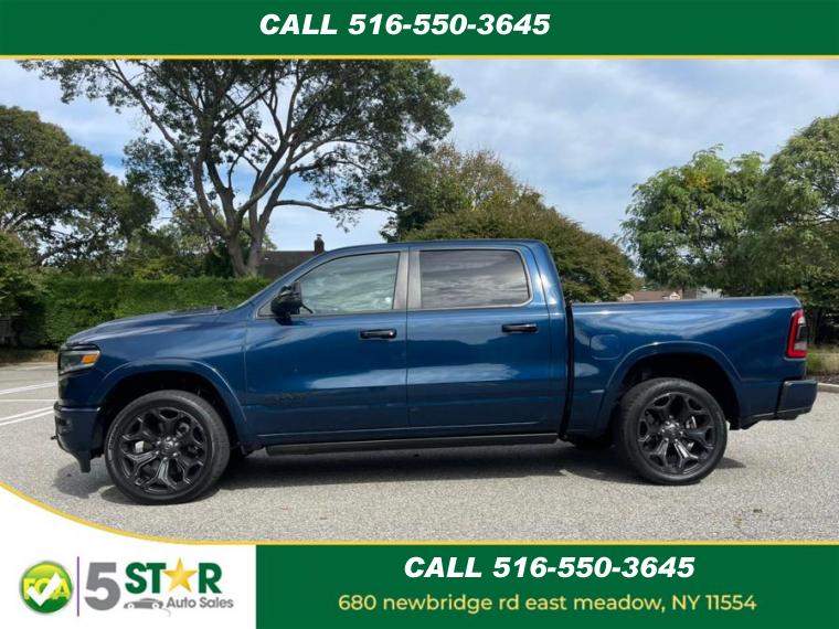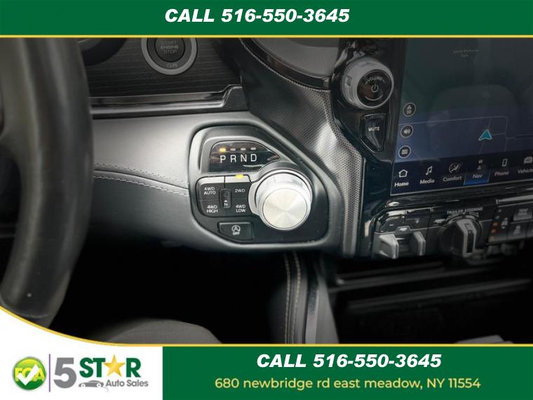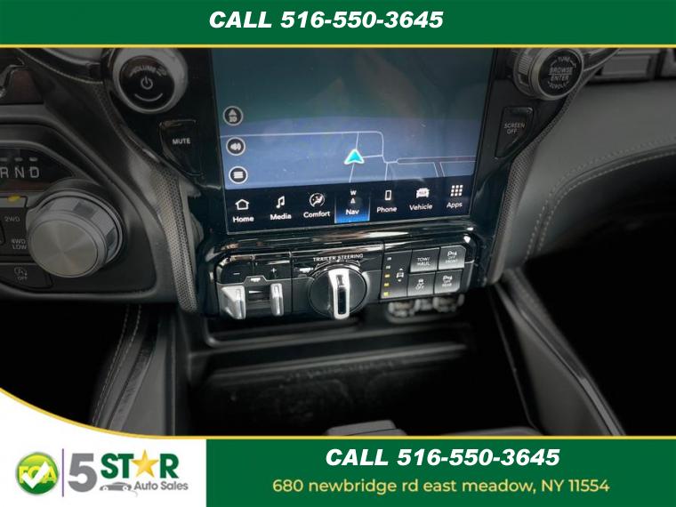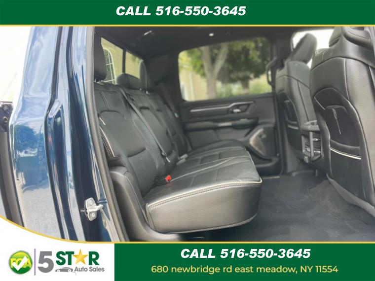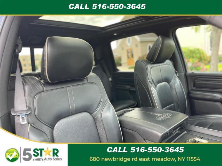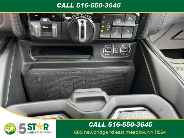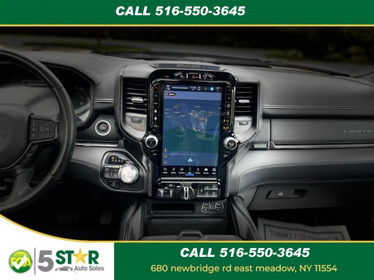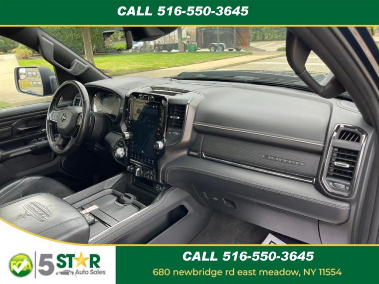 Anti-Spin Differential Rear Axle $495.00, Bed Utility Group $645.00, Black Power-Fold Trailer Tow Mirrors $445.00, Body Color Bumper Group $295.00, Cold Weather Group $235.00, Delete Spray In Bedliner, Dual-Pane Panoramic Sunroof $1, 595.00, Front License Plate Bracket, Limited Level 1 Equipment Group $4, 995.00, Mopar Paint Protection Film $765.00, Mopar Trailer Camera Wiring W/No Camera $590.00, Rambox Cargo Management System $995.00, Trailer Brake Control $295.00, Trailer Surround View Camera System $1, 095.00, Trailer Tow Group $1, 195.00, 3.21 Rear Axle Ratio, Quick Order Package 28M Limited, Engine: 5.7L V8 Hemi Mds Vvt Etorque, Black, Premium Leather Trimmed Bucket Seats, Wheels: 20" X 9" Aluminum Painted/Polished, ABS, 4-Wheel Disc Brakes, 8 Cylinder Engine, 8-Speed A/T, A/C, A/T, Adaptive Cruise Control, Adjustable Pedals, Adjustable Steering Wheel, Aerial View Display System, Air Suspension, Security System, Aluminum Wheels, AM/FM Stereo, Automatic Headlights, Automatic Highbeams, Automatic Parking, Auxiliary Audio Input, Back-Up Camera, Bed Liner, Blind Spot Monitor, Brake Assist, Bucket Seats, Child Safety Locks, Climate Control, Cooled Front Seat(s), Cooled Rear Seat(s), Cross-Traffic Alert, Cruise Control, Daytime Running Lights, Driver Air Bag, Driver Illuminated Vanity Mirror, Driver Adjustable Lumbar, Driver Vanity Mirror, Multi-Zone A/C, Auto-Dimming Rearview Mirror, Stability Control, Fog Lamps, Four Wheel Drive, Front Collision Mitigation, Floor Mats, Tow Hooks, Conventional Spare Tire, Gasoline/Mild Electric Hybrid, HD Radio, Heated Front Seat(s), Heated Mirrors, Heated Rear Seat(s), Heated Steering Wheel, Integrated Turn Signal Mirrors, Intermittent Wipers, Keyless Entry, Keyless Start, Lane Departure Warning, Lane Keeping Assist, Leather Seats, Leather Steering Wheel, LED Headlights, Lithium Ion Traction Battery, Mirror Memory, MP3 Capability, Navigation System, Panoramic Roof, Pass-Through Rear Seat, Passenger Air Bag, Passenger Air Bag Sensor, Passenger Illuminated Visor Mirror, Passenger Adjustable Lumbar, Passenger Vanity Mirror, Power Door Locks, Power Mirror(s), Power Driver Seat, Power Folding Mirrors, Power Passenger Seat, Power Retractable Running Boards, Power Steering, Sun/Moonroof, Power Windows, Premium Sound System, Privacy Glass, Rain Sensing Wipers, Rear Bench Seat, Rear Defrost, Rear Head Air Bag, Rear Parking Aid, Remote Engine Start, Requires Subscription, Running Boards/Side Steps, Satellite Radio, Seat Memory, Front Side Air Bag, Front Head Air Bag, Smart Device Integration, Steering Wheel Audio Controls, Tire Pressure Monitor, Tires - Front Performance, Tires - Rear Performance, Traction Control, Tow Hitch, Trip Computer, Universal Garage Door Opener, Variable Speed Intermittent Wipers, Immobilizer, WiFi Hotspot, Bluetooth Connection, Woodgrain Interior Trim, Auto Dim Exterior Driver Mirror, Auto On/Off Projector Beam Led Low/High Beam Directionally Adaptive Auto High-Beam Daytime Running Lights Preference Setting Headlamps w/Delay-Off, Body-Colored Door Handles, Cargo Lamp w/High Mount Stop Light, Chrome Bodyside Moldings and Body-Colored Fender Flares, Chrome Exterior Mirrors, Chrome Front Bumper w/Chrome Rub Strip/Fascia Accent and 2 Tow Hooks, Chrome Grille, Chrome Rear Step Bumper, Chrome Side Windows Trim, Convex Wide-Angle Exterior Mirror Insert, Deep Tinted Glass, Dual Rear Exhaust w/Bright Tips, Exterior Mirrors Courtesy Lamps, Exterior Mirrors w/Heating Element, Exterior Mirrors w/Supplemental Signals, Front Fog Lamps, Full-Size Spare Tire Stored Underbody w/Crankdown, Galvanized Steel/Aluminum Panels, Headlights-Automatic Highbeams, HEMI Badge, Laminated Glass, LED Brakelights, Passive Tuned Mass Damper, Power Rear Window w/Defroster, Power w/Tilt Down Side Mirrors, Power-Folding Mirrors, Rain Detecting Variable Intermittent Wipers, Regular Box Style, Steel Spare Wheel, Tailgate Rear Cargo Access, Tailgate/Rear Door Lock Included w/Power Door Locks, Tires: 275/55R20 All Season LRR, Wheels: 20" x 9" Aluminum Painted/Polished, 2 12V DC Power Outlets, 2 12V DC Power Outlets and 2 Interior 120V AC Power Outlets, 4 Way Front Headrests, 4G LTE Wi-Fi Hot Spot Mobile Hotspot Internet Access, Air Filtration, Bucket Seats, Cab Mounted Cargo Lights, Compass, Cruise Control w/Steering Wheel Controls, Day-Night Auto-Dimming Rearview Mirror, Delayed Accessory Power, Digital/Analog Appearance, Driver And Passenger Visor Vanity Mirrors w/Driver And Passenger Illumination, Driver Information Center, Driver Seat, Driver Seat Memory, Dual Zone Front Automatic Air Conditioning, Exterior Mirrors w/Memory, Fade-To-Off Interior Lighting, FOB Controls -inc: Keyfob Cargo Access, Keyfob Remote Start and Keyfob Air Suspension Control, Front Center Armrest w/Storage and Rear Center Armrest, Front Map Lights, Front Seat Back Map Pockets, Full Carpet Floor Covering -inc: Rubber w/Carpet Inserts Front And Rear Floor Mats, Full Cloth Headliner, Full Length Premium Floor Console, Garage Door Transmitter, Gauges -inc: Speedometer, Odometer, Voltmeter, Oil Pressure, Engine Coolant Temp, Tachometer, Oil Temperature, Transmission Fluid Temp, Engine Hour Meter, Trip Odometer and Trip Computer, Heated Front Seats, Heated Second Row Seats, Heated Steering Wheel, HVAC -inc: Underseat Ducts and Console Ducts, Illuminated Front Cupholder, Illuminated Locking Glove Box, Instrument Panel Bin, Dashboard Storage, Interior Concealed Storage, Driver / Passenger And Rear Door Bins and 2nd Row Underseat Storage, Interior Trim -inc: Deluxe Sound Insulation, Genuine Wood/Metal-Look Instrument Panel Insert, Genuine Wood/Metal-Look Door Panel Insert, Leather/Genuine Wood Console Insert, Chrome/Metal-Look Interior Accents and Leather Upholstered Dashboard, Leather Door Trim Insert, Leather/Genuine Wood Steering Wheel, Manual Adjustable Rear Head Restraints, Manual Tilt/Telescoping Steering Column, Memory Settings -inc: Audio and Pedals, Metal-Look Gear Shifter Material, Mini Overhead Con