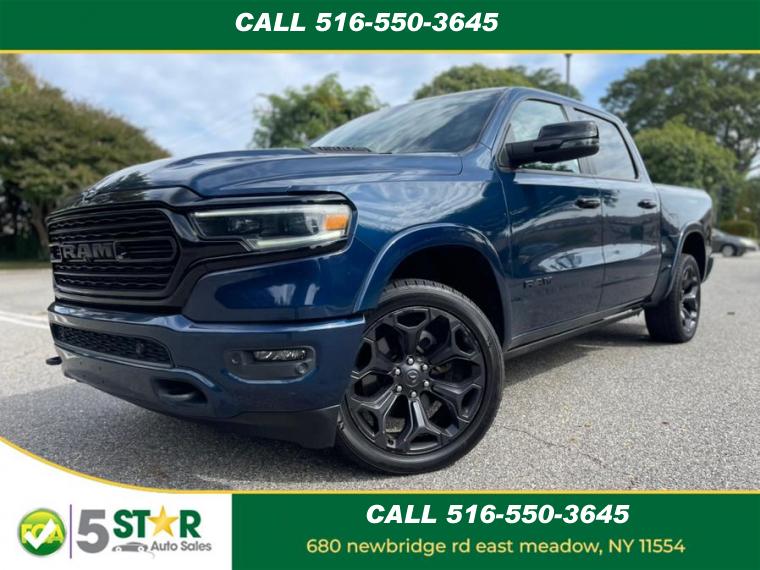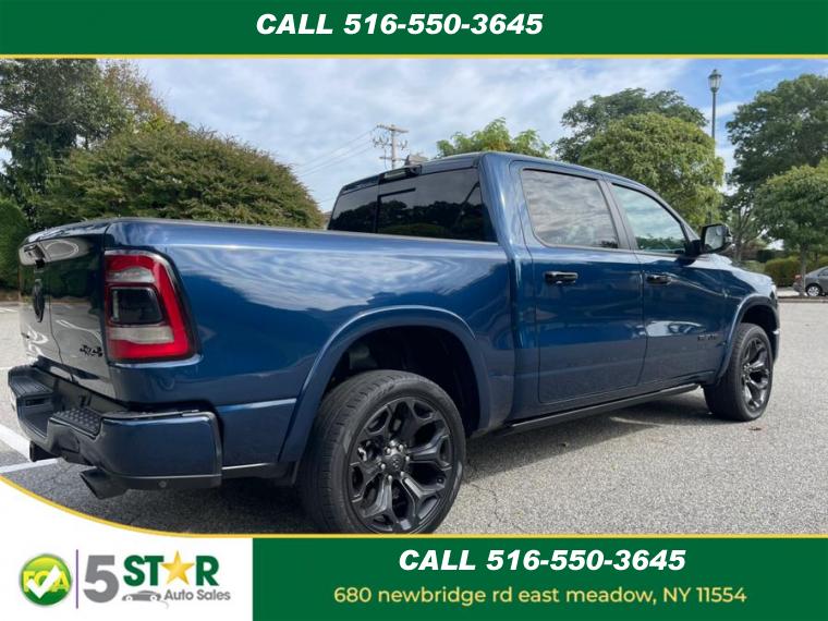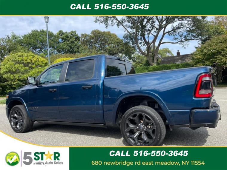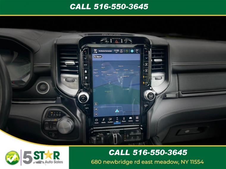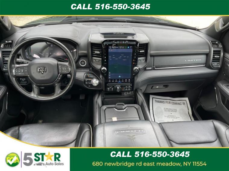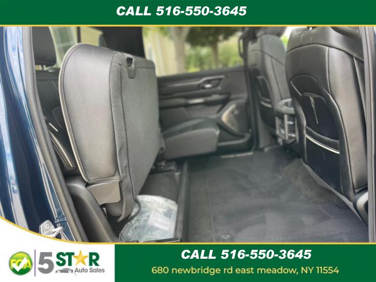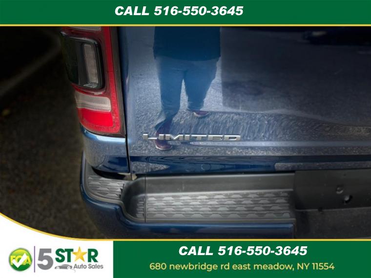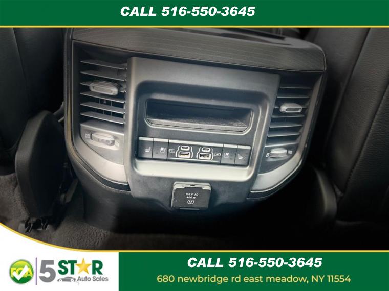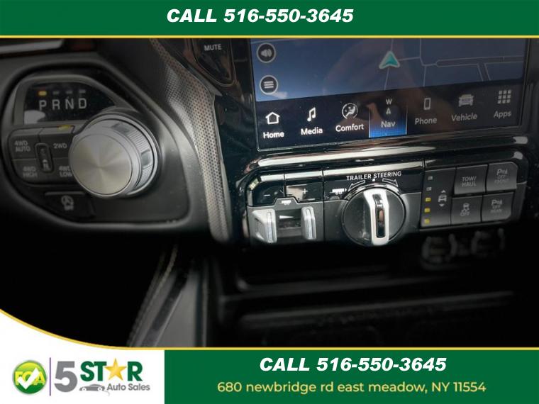 Anti-Spin Differential Rear Axle $495.00, Bed Utility Group $645.00, Black Power-Fold Trailer Tow Mirrors $445.00, Body Color Bumper Group $295.00, Cold Weather Group $235.00, Delete Spray In Bedliner, Dual-Pane Panoramic Sunroof $1, 595.00, Front License Plate Bracket, Limited Level 1 Equipment Group $4, 995.00, Mopar Paint Protection Film $765.00, Mopar Trailer Camera Wiring W/No Camera $590.00, Rambox Cargo Management System $995.00, Trailer Brake Control $295.00, Trailer Surround View Camera System $1, 095.00, Trailer Tow Group $1, 195.00, 3.21 Rear Axle Ratio, Quick Order Package 28M Limited, Engine: 5.7L V8 Hemi Mds Vvt Etorque, Black, Premium Leather Trimmed Bucket Seats, Wheels: 20" X 9" Aluminum Painted/Polished, ABS, 4-Wheel Disc Brakes, 8 Cylinder Engine, 8-Speed A/T, A/C, A/T, Adaptive Cruise Control, Adjustable Pedals, Adjustable Steering Wheel, Aerial View Display System, Air Suspension, Security System, Aluminum Wheels, AM/FM Stereo, Automatic Headlights, Automatic Highbeams, Automatic Parking, Auxiliary Audio Input, Back-Up Camera, Bed Liner, Blind Spot Monitor, Brake Assist, Bucket Seats, Child Safety Locks, Climate Control, Cooled Front Seat(s), Cooled Rear Seat(s), Cross-Traffic Alert, Cruise Control, Daytime Running Lights, Driver Air Bag, Driver Illuminated Vanity Mirror, Driver Adjustable Lumbar, Driver Vanity Mirror, Multi-Zone A/C, Auto-Dimming Rearview Mirror, Stability Control, Fog Lamps, Four Wheel Drive, Front Collision Mitigation, Floor Mats, Tow Hooks, Conventional Spare Tire, Gasoline/Mild Electric Hybrid, HD Radio, Heated Front Seat(s), Heated Mirrors, Heated Rear Seat(s), Heated Steering Wheel, Integrated Turn Signal Mirrors, Intermittent Wipers, Keyless Entry, Keyless Start, Lane Departure Warning, Lane Keeping Assist, Leather Seats, Leather Steering Wheel, LED Headlights, Lithium Ion Traction Battery, Mirror Memory, MP3 Capability, Navigation System, Panoramic Roof, Pass-Through Rear Seat, Passenger Air Bag, Passenger Air Bag Sensor, Passenger Illuminated Visor Mirror, Passenger Adjustable Lumbar, Passenger Vanity Mirror, Power Door Locks, Power Mirror(s), Power Driver Seat, Power Folding Mirrors, Power Passenger Seat, Power Retractable Running Boards, Power Steering, Sun/Moonroof, Power Windows, Premium Sound System, Privacy Glass, Rain Sensing Wipers, Rear Bench Seat, Rear Defrost, Rear Head Air Bag, Rear Parking Aid, Remote Engine Start, Requires Subscription, Running Boards/Side Steps, Satellite Radio, Seat Memory, Front Side Air Bag, Front Head Air Bag, Smart Device Integration, Steering Wheel Audio Controls, Tire Pressure Monitor, Tires - Front Performance, Tires - Rear Performance, Traction Control, Tow Hitch, Trip Computer, Universal Garage Door Opener, Variable Speed Intermittent Wipers, Immobilizer, WiFi Hotspot, Bluetooth Connection, Woodgrain Interior Trim, Auto Dim Exterior Driver Mirror, Auto On/Off Projector Beam Led Low/High Beam Directionally Adaptive Auto High-Beam Daytime Running Lights Preference Setting Headlamps w/Delay-Off, Body-Colored Door Handles, Cargo Lamp w/High Mount Stop Light, Chrome Bodyside Moldings and Body-Colored Fender Flares, Chrome Exterior Mirrors, Chrome Front Bumper w/Chrome Rub Strip/Fascia Accent and 2 Tow Hooks, Chrome Grille, Chrome Rear Step Bumper, Chrome Side Windows Trim, Convex Wide-Angle Exterior Mirror Insert, Deep Tinted Glass, Dual Rear Exhaust w/Bright Tips, Exterior Mirrors Courtesy Lamps, Exterior Mirrors w/Heating Element, Exterior Mirrors w/Supplemental Signals, Front Fog Lamps, Full-Size Spare Tire Stored Underbody w/Crankdown, Galvanized Steel/Aluminum Panels, Headlights-Automatic Highbeams, HEMI Badge, Laminated Glass, LED Brakelights, Passive Tuned Mass Damper, Power Rear Window w/Defroster, Power w/Tilt Down Side Mirrors, Power-Folding Mirrors, Rain Detecting Variable Intermittent Wipers, Regular Box Style, Steel Spare Wheel, Tailgate Rear Cargo Access, Tailgate/Rear Door Lock Included w/Power Door Locks, Tires: 275/55R20 All Season LRR, Wheels: 20" x 9" Aluminum Painted/Polished, 2 12V DC Power Outlets, 2 12V DC Power Outlets and 2 Interior 120V AC Power Outlets, 4 Way Front Headrests, 4G LTE Wi-Fi Hot Spot Mobile Hotspot Internet Access, Air Filtration, Bucket Seats, Cab Mounted Cargo Lights, Compass, Cruise Control w/Steering Wheel Controls, Day-Night Auto-Dimming Rearview Mirror, Delayed Accessory Power, Digital/Analog Appearance, Driver And Passenger Visor Vanity Mirrors w/Driver And Passenger Illumination, Driver Information Center, Driver Seat, Driver Seat Memory, Dual Zone Front Automatic Air Conditioning, Exterior Mirrors w/Memory, Fade-To-Off Interior Lighting, FOB Controls -inc: Keyfob Cargo Access, Keyfob Remote Start and Keyfob Air Suspension Control, Front Center Armrest w/Storage and Rear Center Armrest, Front Map Lights, Front Seat Back Map Pockets, Full Carpet Floor Covering -inc: Rubber w/Carpet Inserts Front And Rear Floor Mats, Full Cloth Headliner, Full Length Premium Floor Console, Garage Door Transmitter, Gauges -inc: Speedometer, Odometer, Voltmeter, Oil Pressure, Engine Coolant Temp, Tachometer, Oil Temperature, Transmission Fluid Temp, Engine Hour Meter, Trip Odometer and Trip Computer, Heated Front Seats, Heated Second Row Seats, Heated Steering Wheel, HVAC -inc: Underseat Ducts and Console Ducts, Illuminated Front Cupholder, Illuminated Locking Glove Box, Instrument Panel Bin, Dashboard Storage, Interior Concealed Storage, Driver / Passenger And Rear Door Bins and 2nd Row Underseat Storage, Interior Trim -inc: Deluxe Sound Insulation, Genuine Wood/Metal-Look Instrument Panel Insert, Genuine Wood/Metal-Look Door Panel Insert, Leather/Genuine Wood Console Insert, Chrome/Metal-Look Interior Accents and Leather Upholstered Dashboard, Leather Door Trim Insert, Leather/Genuine Wood Steering Wheel, Manual Adjustable Rear Head Restraints, Manual Tilt/Telescoping Steering Column, Memory Settings -inc: Audio and Pedals, Metal-Look Gear Shifter Material, Mini Overhead Con