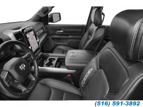 DIAMOND BLACK CRYSTAL PEARLCOAT, BRIGHT WHITE CLEARCOAT, COMFORT/CONVENIENCE GROUP -inc: Remote Tailgate Release Exterior Mirrors w/Memory Heated Second Row Seats Wireless Charging Pad Power 8-Way Driver & Passenger Seats, NIGHT EDITION -inc: Black Front Bumper w/Black Plate Wheels: 18 x 8.0 Gloss Black Grille Surround 2 Black Texture 3 Black RAM Grille Badge - Black, BLACK LEATHER/VINYL BUCKET SEATS -inc: Heated Front Seats Heated Steering Wheel Driver Seat Memory Power 4-Way Passenger Lumbar Adjust Power 8-Way Driver & Passenger Seats Ventilated Front Seats Power 4-Way Driver Lumbar Adjust, CLASS IV RECEIVER HITCH, ENGINE: 5.7L V8 HEMI MDS VVT ETORQUE -inc: Active Noise Control System Heavy Duty Engine Cooling Passive Tuned Mass Damper Dual Exhaust w/Black Tips GVWR: 7 100 lbs HEMI Badge 23 Gallon Fuel Tank, ELECTRIC SHIFT ON DEMAND TRANSFER CASE, REAR WHEELHOUSE LINERS, REBEL LEVEL 2 EQUIPMENT GROUP -inc: Power Adjustable Pedals 12 Touchscreen Display 115V Auxiliary Rear Power Outlet Media Hub w/2 Charge Only USBs Rear Underseat Compartment Storage Heated Front Seats Security Alarm Black Premium Power Mirrors Remote Start System harman/kardon 19 Speaker Premium Sound Universal Garage Door Opener 2nd Row In Floor Storage Bins Sun Visors w/Illuminated Vanity Mirrors Power 2-Way Driver Lumbar Adjust Rear Window Defroster Rain Sensitive Windshield Wipers ParkSense Front/Rear Park Assist w/Stop Rear Power Sliding Window Rear Dome w/On/Off Switch Lamp Power 8-Way Driver Seat Auto Dim Exterior Driver Mirror Accent Color Door Handles Heated Steering Wheel Foam Bottle Insert (Door Trim Panel) Radio: Uconnect 5 Nav w/12.0 Display Exterior Mirrors w/Supplemental Signals Exterior Mirrors Courtesy Lamps 2-Door Passive Entry Front Door Locks Power-Folding Mirrors, G/T PACKAGE -inc: Premium Overhead Console Under Seat Lighting Leather Wrapped Shift Knob Leather-Wrapped Steering Wheel Power Adjustable Pedals w/Memory Steering Wheel Mounted Shift Control MOPAR Bright Pedal Kit MOPAR Cold Air Intake System Passive Cold End Exhaust Overhead LED Lamps Floor Console G/T Decal LED Dome Lamp w/On/Off Switch Exterior Mirrors w/Memory Front Door Accent Lighting GT Interior Theme Radio/Driver Seat/Mirrors/Pedals Memory Rear Door Accent Lighting Performance Pages, LOWER TWO TONE PAINT, TRANSMISSION: 8-SPEED AUTOMATIC (8HP75), 33 GALLON FUEL TANK, WHEELS: 18 X 8.0 GLOSS BLACK, DUAL-PANE PANORAMIC SUNROOF -inc: Premium Overhead Console Dome Dual LED Reading Lamp Overhead LED Lamps, BLIND SPOT & CROSS PATH DETECTION, QUICK ORDER PACKAGE 27W REBEL -inc: Engine: 5.7L V8 HEMI MDS VVT eTorque Transmission: 8-Speed Automatic (8HP75), TECHNOLOGY GROUP -inc: Head Up Display LED CHMSL Lamp Digital Rearview Mirror, Four Wheel Drive, Locking/Limited Slip Differential, Tow Hitch, Power Steering, ABS, 4-Wheel Disc Brakes, Brake Assist, Lithium Ion Traction Battery, Aluminum Wheels, Tires - Front All-Terrain, Tires - Rear All-Terrain, Conventional Spare Tire, Tow Hooks, Power Mirror(s), Heated Mirrors, Privacy Glass, Intermittent Wipers, Variable Speed Intermittent Wipers, Power Door Locks, Daytime Running Lights, Automatic Headlights, LED Headlights, Fog Lamps, AM/FM Stereo, Navigation System, Satellite Radio, Bluetooth Connection, HD Radio, Requires Subscription, MP3 Capability, Steering Wheel Audio Controls, Auxiliary Audio Input, Satellite Radio, HD Radio, Requires Subscription, Satellite Radio, HD Radio, Requires Subscription, Satellite Radio, HD Radio, Requires Subscription, Adjustable Steering Wheel, Trip Computer, Power Windows, Pass-Through Rear Seat, Rear Bench Seat, Leather Steering Wheel, Keyless Start, Keyless Entry, Power Door Locks, Cruise Control, Climate Control, Multi-Zone A/C, A/C, Bucket Seats, Passenger Vanity Mirror, Passenger Illuminated Visor Mirror, Auto-Dimming Rearview Mirror, Floor Mats, Navigation System, Smart Device Integration, Smart Device Integration, WiFi Hotspot, Bluetooth Connection, Power Windows, Power Door Locks, Trip Computer, Immobilizer, Traction Control, Stability Control, Traction Control, Front Side Air Bag, Telematics, Requires Subscription, Front Collision Mitigation, Tire Pressure Monitor, Driver Air Bag, Passenger Air Bag, Front Head Air Bag, Rear Head Air Bag, Passenger Air Bag Sensor, Child Safety Locks, Back-Up Camera