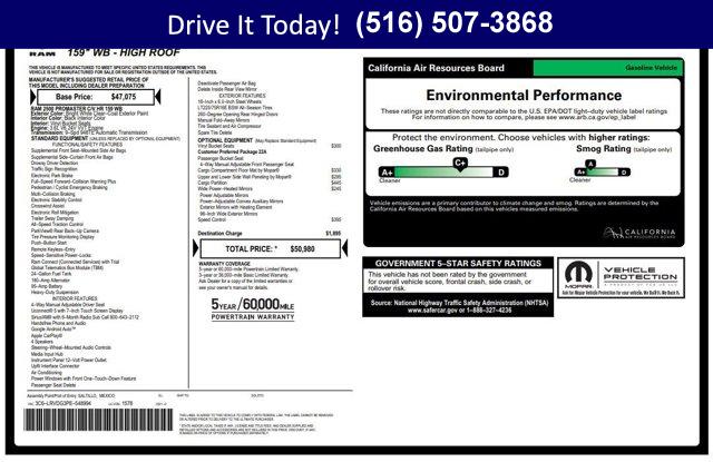 Maximize your business potential with this One Owner, Clean Carfax 2023 Ram ProMaster Cargo Van. Offering ample cargo space, advanced features, and a reliable engine, its built to handle your toughest jobs with ease and efficiency. Ready to elevate your workday! Every Westbury Pre-owned vehicle is thoroughly checked and reconditioned. All this vehicle needs is you!KEY FEATURES INCLUDEBack-Up Camera, Satellite Radio, iPod/MP3 Input, Bluetooth, Keyless StartOPTION PACKAGESBLACK, WIDE POWER HEATED MIRRORS 96 Wide Exterior Mirrors, ENGINE: 3.6L V6 24V VVT (STD). Ram ProMaster Cargo Van with Bright White Clearcoat exterior and Black interior features a V6 Cylinder Engine with 276 HP at 6400 RPM*.WHY BUY FROM USWe hand select the finest automobiles possible, recondition as required so you do not have to worry about anything shortly down the road. Our Certified vehicles for example all have more than 50% brake life, most have brand new brakes installed front and rear and it does not end there.WESTBURY VIPAmerica's #1 VIP Plus Program includes Complimentary Loaner Cars, UnlimitedOil & Filter changes for 1 yr. & then included with every factorymaintenance, Courtesy Shuttle to work, home or any other location, ExpressLube 30 minutes or less w/ no appointment necessary, Complimentary NYSI, 24/7 Rescue & Towing.