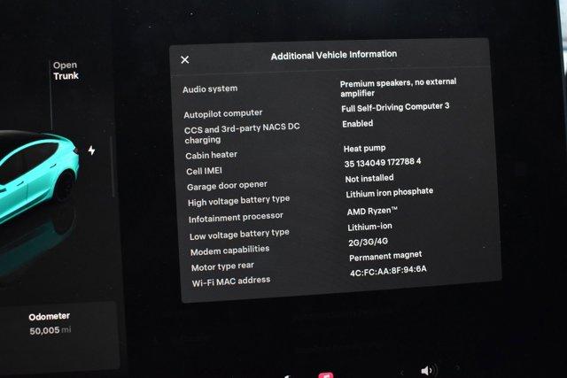 Electric Motor, Rear Wheel Drive, Power Steering, ABS, 4-Wheel Disc Brakes, Brake Assist, Lithium Ion Traction Battery, Aluminum Wheels, Wheel Covers, Tires - Front Performance, Tires - Rear Performance, Wheel Covers, Sun/Moonroof, Generic Sun/Moonroof, Dual Moonroof, Generic Sun/Moonroof, Dual Moonroof, Heated Mirrors, Power Mirror(s), Power Folding Mirrors, Rear Defrost, Intermittent Wipers, Variable Speed Intermittent Wipers, Rain Sensing Wipers, Remote Trunk Release, Power Liftgate, Power Door Locks, Daytime Running Lights, Automatic Headlights, Headlights-Auto-Leveling, LED Headlights, Automatic Highbeams, AM/FM Stereo, Navigation System, MP3 Capability, Bluetooth Connection, Auxiliary Audio Input, HD Radio, MP3 Capability, Steering Wheel Audio Controls, Hard Disk Drive Media Storage, Bluetooth Connection, Power Driver Seat, Power Passenger Seat, Bucket Seats, Heated Front Seat(s), Seat Memory, Mirror Memory, Driver Adjustable Lumbar, Seat Memory, Driver Adjustable Lumbar, Pass-Through Rear Seat, Heated Rear Seat(s), Rear Bench Seat, Adjustable Steering Wheel, Trip Computer, Power Windows, Telematics, Requires Subscription, Heated Steering Wheel, Keyless Entry, Power Door Locks, Keyless Start, Keyless Entry, Power Door Locks, Remote Trunk Release, Cruise Control, Adaptive Cruise Control, Climate Control, Multi-Zone A/C, A/C, Woodgrain Interior Trim, Premium Synthetic Seats, Auto-Dimming Rearview Mirror, Driver Vanity Mirror, Passenger Vanity Mirror, Driver Illuminated Vanity Mirror, Passenger Illuminated Visor Mirror, Mirror Memory, Seat Memory, Keyless Start, Navigation System, Smart Device Integration, Power Windows, Power Door Locks, Trip Computer, Immobilizer, Traction Control, Stability Control, Traction Control, Front Side Air Bag, Telematics, Requires Subscription, Rear Parking Aid, Blind Spot Monitor, Cross-Traffic Alert, Lane Departure Warning, Lane Keeping Assist, Lane Departure Warning, Front Collision Mitigation, Driver Monitoring, Tire Pressure Monitor, Driver Air Bag, Passenger Air Bag, Front Head Air Bag, Rear Head Air Bag, Passenger Air Bag Sensor, Knee Air Bag, Driver Restriction Features, Child Safety Locks, Back-Up Camera
