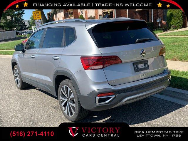 All pricing and details are believed to be accurate, but we do not warrant or guarantee such accuracy. The prices shown above may vary from region to region, as will incentives, and are subject to change. All cars are sold cosmetically As-Is. Vehicle information is based on standard equipment and may vary from vehicle to vehicle. Call or email for complete vehicle specific information. Price Does not include tax, title, license, destination charges, finance charges, or any reconditioning fees. Our special Internet pricing cannot be extended without a printed copy of the online pricing. The in-store price may exceed our special online pricing. Sorry but we cannot extend special pricing without a printed copy of the on-line pricing. To take advantage of our special Internet discounts, please print this page and present it to your salesperson at the BEGINNING of the transaction. Special Internet pricing posted on this ad/coupon/promotion is only available to customers who reference such pricing & present the ad at time of sale otherwise our store standard list price applies. Please be advised this ad is a Special Internet only ad. Prices can be modified and adjusted weekly, daily and sometimes hourly due to inquiries, bidding and website traffic on any Vehicles. All displayed inventory is subject to prior sale and all prices expire at midnight on the date displayed. Every reasonable effort has been made to ensure the accuracy of the information contained on this site, however absolute accuracy cannot be guaranteed. Advertised special excludes state tax, title, license, registration, NY state inspection, NYS tire recycling fee, finance charges, and dealer fees if applicable. Please verify any information in question with the dealership sales manager. This is easily done by calling us at (516) 271-4110 or by visiting us at the dealership. **With approved credit. Silver 2023 Volkswagen Taos 1.5T SE FWD 8-Speed Automatic with Tiptronic 1.5L I4 Turbocharged DOHC 16V LEV3-SULEV30 158hp
