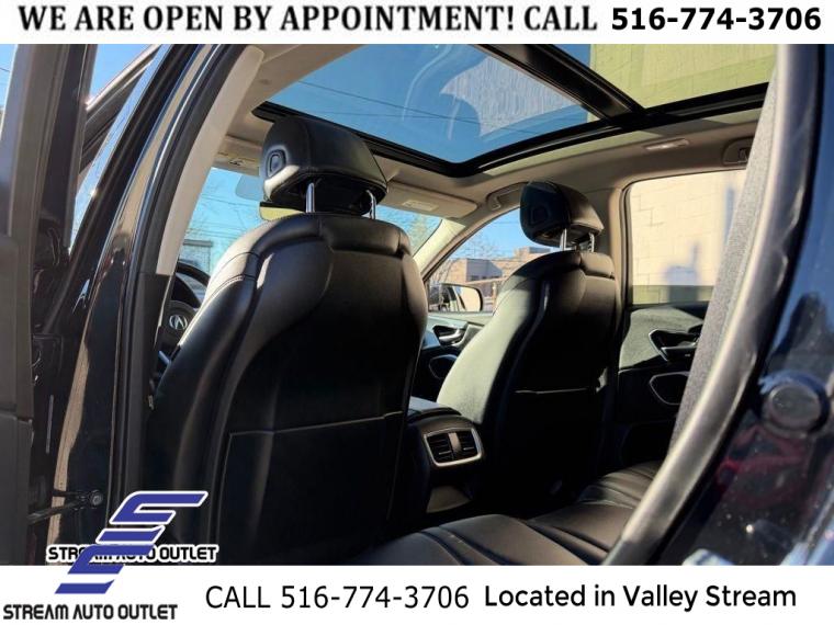 9 Speakers, AM/FM radio: SiriusXM, Premium Audio System, Radio data system, Air Conditioning, Automatic temperature control, Front dual zone A/C, Rear window defroster, Memory seat, Power driver seat, Power steering, Power windows, Remote keyless entry, Steering wheel mounted audio controls, Four wheel independent suspension, Speed-sensing steering, Traction control, 4-Wheel Disc Brakes, ABS brakes, Dual front impact airbags, Dual front side impact airbags, Emergency communication system: AcuraLink, Front anti-roll bar, Knee airbag, Low tire pressure warning, Occupant sensing airbag, Overhead airbag, Rear anti-roll bar, Power moonroof, Power Liftgate, Brake assist, Electronic Stability Control, Lane departure: Lane Keeping Assist System (LKAS) active, Exterior Parking Camera Rear, Auto High-beam Headlights, Delay-off headlights, Fully automatic headlights, Panic alarm, Security system, Speed control, Bumpers: body-color, Heated door mirrors, Power door mirrors, Spoiler, Turn signal indicator mirrors, Apple CarPlay/Android Auto, Auto-dimming Rear-View mirror, Compass, Driver door bin, Driver vanity mirror, Front reading lights, Garage door transmitter: HomeLink, Illuminated entry, Outside temperature display, Overhead console, Passenger vanity mirror, Rear reading lights, Rear seat center armrest, Tachometer, Telescoping steering wheel, Tilt steering wheel, Trip computer, Front Bucket Seats, Front Center Armrest, Heated front seats, Heated Front Sport Seats, Leatherette-Trimmed Interior, Power passenger seat, Split folding rear seat, Passenger door bin, Alloy wheels, Wheels: 19" x 8.0J Sparkle Silver Multi-Spoke, Rear window wiper, Variably intermittent wipers, 4.17 Axle Ratio, * NYS INSPECTION INCLUDED *, * FULL INTERIOR / EXTERIOR DETAIL *, * BLUETOOTH *, * LIMITED NYS LEMON LAW WARRANTY INCLUDED *, *FRESH OIL CHANGE *, * 150 MULTI POINT INSPECTION *