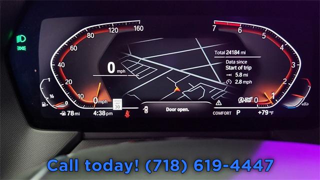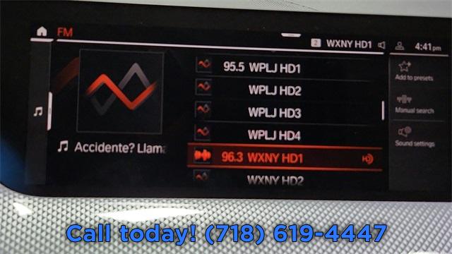 Navigation, Navigation System, Connected Package Pro, 10 Speakers, AM/FM radio: SiriusXM, Hi-Fi Sound System, Radio data system, Radio: AM/FM Audio System, SiriusXM Satellite Radio w/1 Year Subscription, Air Conditioning, Automatic temperature control, Front dual zone A/C, Rear window defroster, Memory seat, Power driver seat, Power steering, Power windows, Remote keyless entry, Steering wheel mounted audio controls, Four wheel independent suspension, Speed-sensing steering, Traction control, 4-Wheel Disc Brakes, ABS brakes, Dual front impact airbags, Dual front side impact airbags, Emergency communication system: BMW Assist eCall, Front anti-roll bar, Knee airbag, Low tire pressure warning, Occupant sensing airbag, Overhead airbag, Rear anti-roll bar, Panoramic Moonroof, Brake assist, Electronic Stability Control, Exterior Parking Camera Rear, Auto High-beam Headlights, Delay-off headlights, Front fog lights, Fully automatic headlights, Panic alarm, Security system, Speed control, Auto-dimming door mirrors, Bumpers: body-color, Heated door mirrors, Power door mirrors, Turn signal indicator mirrors, Apple CarPlay & Android Auto Compatibility, Apple CarPlay Compatibility, Auto-dimming Rear-View mirror, BMW Assist eCall, BMW TeleServices, Compass, ConnectedDrive Services, Driver door bin, Driver vanity mirror, Enhanced USB & Bluetooth, Front reading lights, Illuminated entry, Outside temperature display, Passenger vanity mirror, Rear reading lights, Rear seat center armrest, Sport steering wheel, Tachometer, Telescoping steering wheel, Tilt steering wheel, Trip computer, Front Bucket Seats, Front Center Armrest, Power Front Seats, Power passenger seat, SensaTec Upholstery, Split folding rear seat, Sport Seats, Passenger door bin, Alloy wheels, Wheels: 17" x 7.5" Double-Spoke, Rain sensing wipers, Speed-Sensitive Wipers, Variably intermittent wipers