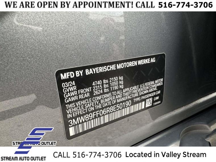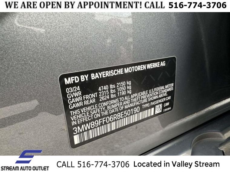 For more information on this 2024 BMW 330i, please call Stream Auto Outlet Valley Stream at (516) 774-3706 or with the contact form on this page. This vehicle's vin number is 3MW89FF06R8E50190 and is recorded as being in stock at Stream Auto Outlet Valley Stream at 324 W Merrick Rd in Valley Stream. See all cars from this dealership.