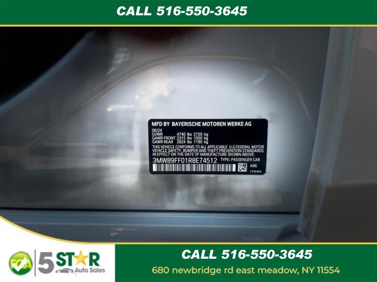 For more information on this 2024 BMW 330i, please call 5 Star Auto Sales at (516) 550-3645 or with the contact form on this page. This vehicle's vin number is 3MW89FF01R8E74512 and is recorded as being in stock at 5 Star Auto Sales at 680 Newbridge Rd in East Meadow. See all cars from this dealership.