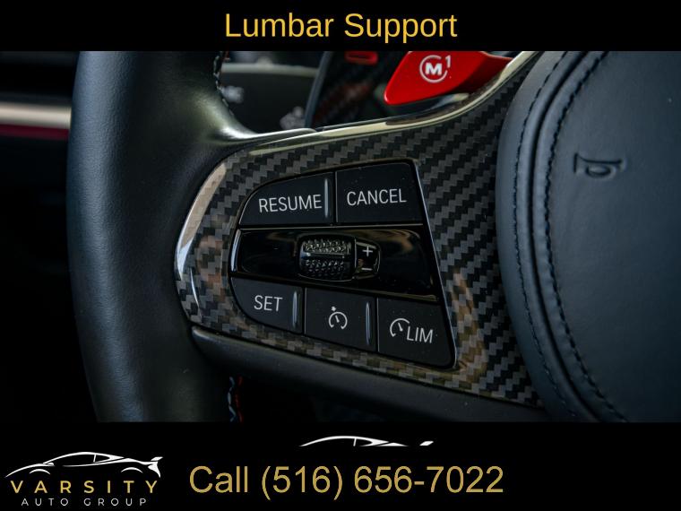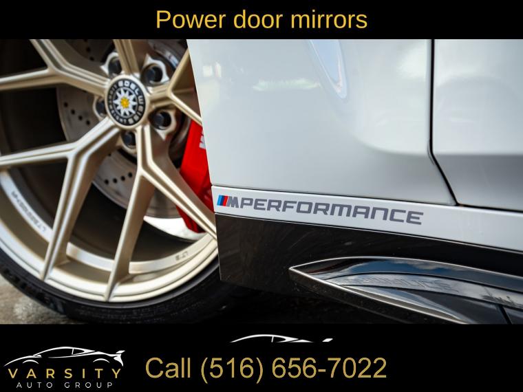 Navigation, Navigation System, Connected Package Pro, Executive Package, Parking Assistance Package, 16 Speakers, AM/FM Radio, AM/FM radio: SiriusXM, harman/kardon Surround Sound System, harman/kardonĀ® Speakers, Radio data system, SiriusXM w/360L & 1 Year Platinum Plan Subscription, Air Conditioning, Automatic temperature control, Front dual zone A/C, Rear air conditioning, Rear window defroster, Lumbar Support, Memory seat, Power driver seat, Power steering, Power windows, Remote Engine Start, Remote keyless entry, Steering wheel mounted audio controls, Adaptive suspension, Four wheel independent suspension, Speed-sensing steering, Traction control, 4-Wheel Disc Brakes, ABS brakes, Dual front impact airbags, Dual front side impact airbags, Emergency communication system: BMW Assist eCall, Front anti-roll bar, Knee airbag, Low tire pressure warning, M Compound Brakes w/Red Calipers, Occupant sensing airbag, Overhead airbag, Rear anti-roll bar, Power Tailgate, Brake assist, Electronic Stability Control, Exterior Parking Camera Rear, Auto High-beam Headlights, Delay-off headlights, Fully automatic headlights, Panic alarm, Security system, Speed control, Auto-dimming door mirrors, Bumpers: body-color, Heated door mirrors, M Shadowline Lights, Parking Assistant Plus, Power door mirrors, Spoiler, Turn signal indicator mirrors, Apple CarPlay & Android Auto Compatibility, Auto-dimming Rear-View mirror, BMW Assist eCall, BMW Curved Display w/HUD, BMW TeleServices, Carbon Fiber Trim, Compass, ConnectedDrive Services, Driver door bin, Driver vanity mirror, Front reading lights, Garage door transmitter, Heated Steering Wheel, Illuminated entry, Individual Piano Black Finish Trim, Leather Shift Knob, M Carbon Bucket Seats, Outside temperature display, Passenger vanity mirror, Rear reading lights, SensaTec Dashboard, Sport steering wheel, Tachometer, Telescoping steering wheel, Tilt steering wheel, Trip computer, Wireless Device Charging, Extended Merino Leather Upholstery, Front Bucket Seats, Front Center Armrest, Heated Front Seats, Heated front seats, M Sport Seats, Power Front Seats, Power passenger seat, Split folding rear seat, Passenger door bin, Alloy wheels, Wheels: 19"x9.5" Fr. & 20"x10.5" Rr M Black, Wheels: 19"x9.5" Fr.&20"x10.5"Rr. M Bi-color (1T8), Rain sensing wipers, Speed-Sensitive Wipers, Variably intermittent wipers, The Price you See, is the Price You Pay!!!, ONE OWNER