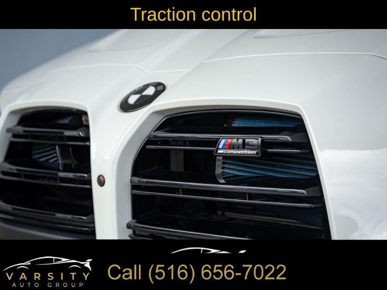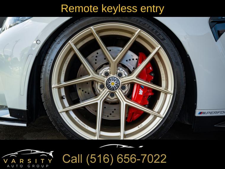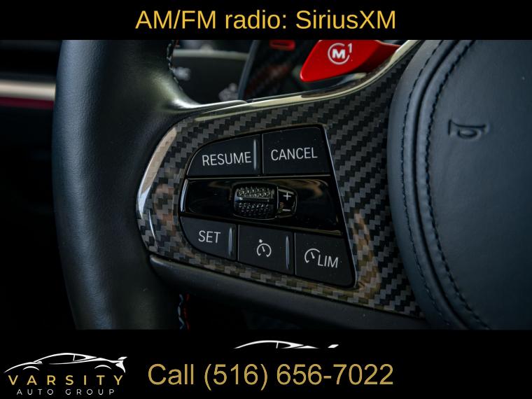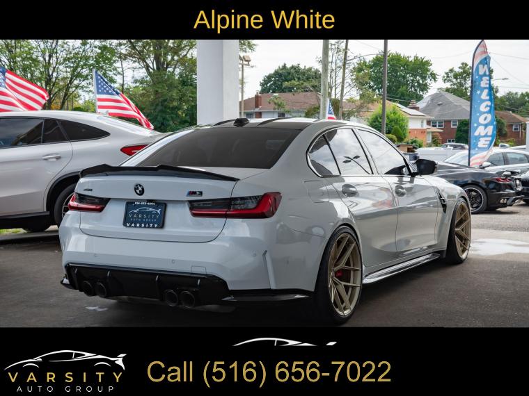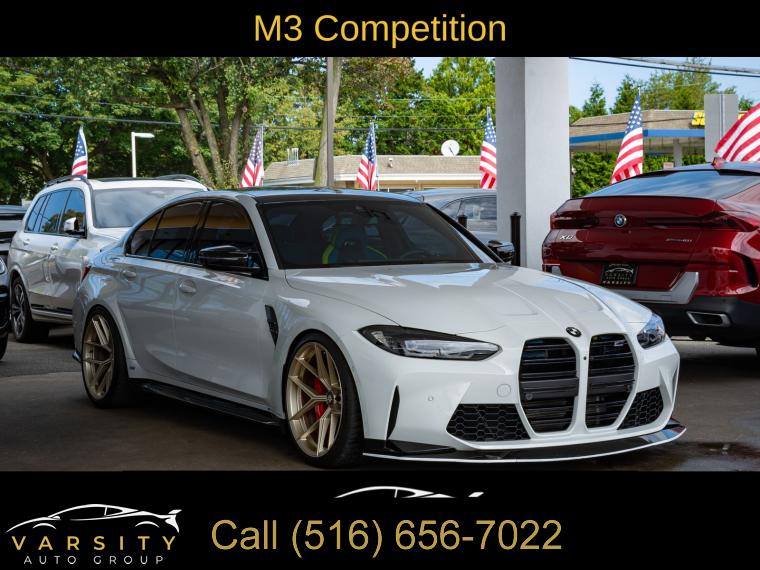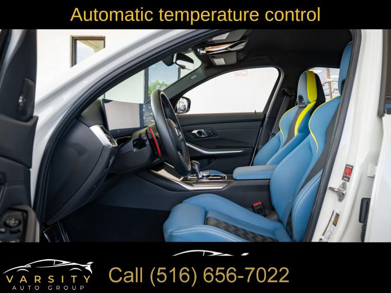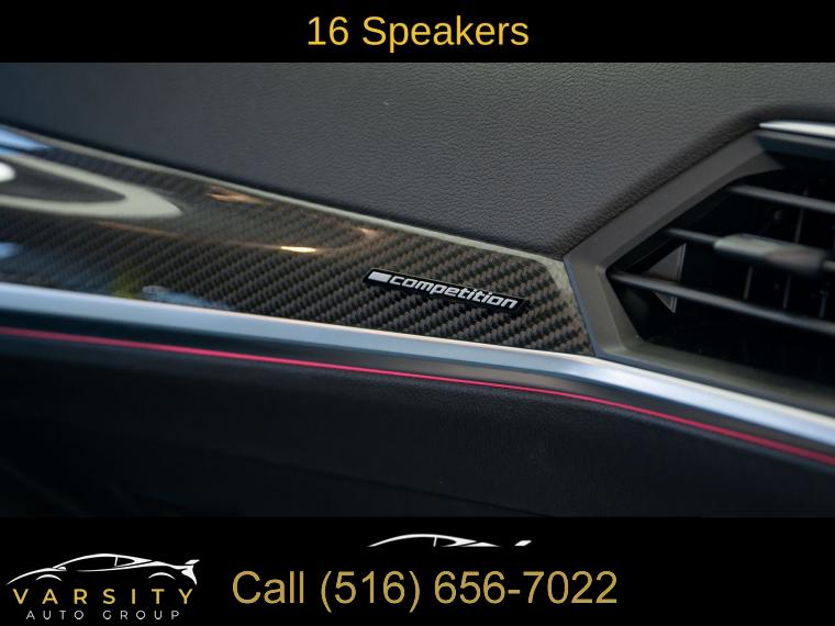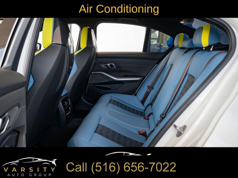 Navigation, Navigation System, Connected Package Pro, Executive Package, Parking Assistance Package, 16 Speakers, AM/FM Radio, AM/FM radio: SiriusXM, harman/kardon Surround Sound System, harman/kardonĀ® Speakers, Radio data system, SiriusXM w/360L & 1 Year Platinum Plan Subscription, Air Conditioning, Automatic temperature control, Front dual zone A/C, Rear air conditioning, Rear window defroster, Lumbar Support, Memory seat, Power driver seat, Power steering, Power windows, Remote Engine Start, Remote keyless entry, Steering wheel mounted audio controls, Adaptive suspension, Four wheel independent suspension, Speed-sensing steering, Traction control, 4-Wheel Disc Brakes, ABS brakes, Dual front impact airbags, Dual front side impact airbags, Emergency communication system: BMW Assist eCall, Front anti-roll bar, Knee airbag, Low tire pressure warning, M Compound Brakes w/Red Calipers, Occupant sensing airbag, Overhead airbag, Rear anti-roll bar, Power Tailgate, Brake assist, Electronic Stability Control, Exterior Parking Camera Rear, Auto High-beam Headlights, Delay-off headlights, Fully automatic headlights, Panic alarm, Security system, Speed control, Auto-dimming door mirrors, Bumpers: body-color, Heated door mirrors, M Shadowline Lights, Parking Assistant Plus, Power door mirrors, Spoiler, Turn signal indicator mirrors, Apple CarPlay & Android Auto Compatibility, Auto-dimming Rear-View mirror, BMW Assist eCall, BMW Curved Display w/HUD, BMW TeleServices, Carbon Fiber Trim, Compass, ConnectedDrive Services, Driver door bin, Driver vanity mirror, Front reading lights, Garage door transmitter, Heated Steering Wheel, Illuminated entry, Individual Piano Black Finish Trim, Leather Shift Knob, M Carbon Bucket Seats, Outside temperature display, Passenger vanity mirror, Rear reading lights, SensaTec Dashboard, Sport steering wheel, Tachometer, Telescoping steering wheel, Tilt steering wheel, Trip computer, Wireless Device Charging, Extended Merino Leather Upholstery, Front Bucket Seats, Front Center Armrest, Heated Front Seats, Heated front seats, M Sport Seats, Power Front Seats, Power passenger seat, Split folding rear seat, Passenger door bin, Alloy wheels, Wheels: 19"x9.5" Fr. & 20"x10.5" Rr M Black, Rain sensing wipers, Speed-Sensitive Wipers, Variably intermittent wipers, The Price you See, is the Price You Pay!!!, M3 Competition, Alpine White, Yas Marina Blue/Black w/Yellow Accent w/Extended Merino Leather Upholster, Edelweiss LT3 Wheels in Champange Finish, Michelin Pilot Sport 4 S tires, xDrive, 3.0L I6 Turbocharged DOHC 24V LEV3-ULEV70 543hp, 8-Speed Automatic Steptronic, 1 Owner, Clean CARFAX