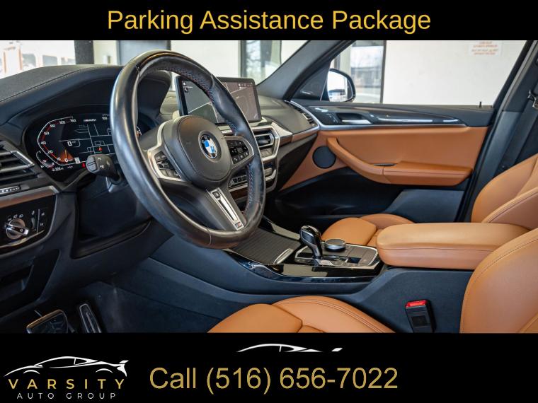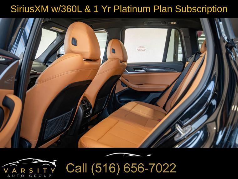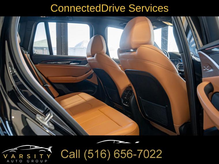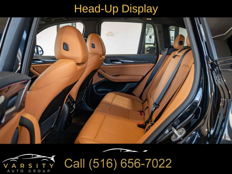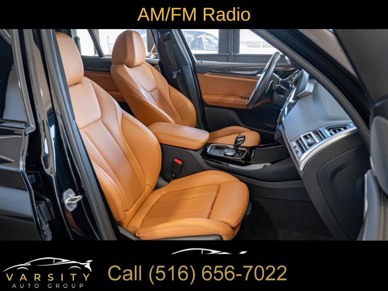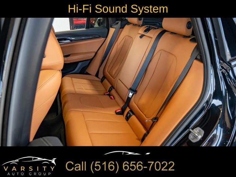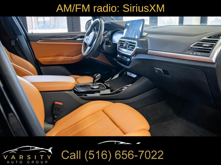 Navigation System, Connected Package Pro, Parking Assistance Package, Premium Package, Shadowline Package, 12 Speakers, AM/FM Radio, AM/FM radio: SiriusXM, ConnectedDrive Services, harman/kardon Surround Sound System, Hi-Fi Sound System, Radio data system, SiriusXM w/360L & 1 Yr Platinum Plan Subscription, Air Conditioning, Automatic temperature control, Front dual zone A/C, Rear air conditioning, Rear window defroster, Head-Up Display, Lumbar Support, Memory seat, Power driver seat, Power steering, Power windows, Remote keyless entry, Steering wheel mounted audio controls, Adaptive suspension, Four wheel independent suspension, Speed-sensing steering, Traction control, 4-Wheel Disc Brakes, ABS brakes, Dual front impact airbags, Dual front side impact airbags, Emergency communication system: BMW Assist eCall, Front anti-roll bar, Increased Top Speed Limiter, Knee airbag, Low tire pressure warning, M Sport Brakes w/Red Calipers, Occupant sensing airbag, Overhead airbag, Rear anti-roll bar, Power moonroof, Power Liftgate, Brake assist, Electronic Stability Control, Exterior Parking Camera Rear, Rear-View Camera, Auto High-beam Headlights, Delay-off headlights, Fully automatic headlights, Panic alarm, Security system, Speed control, Auto-dimming door mirrors, Bumpers: body-color, Extended Shadowline Trim, Heated door mirrors, M Shadowline Lights, Parking Assistant Plus, Power door mirrors, Spoiler, Turn signal indicator mirrors, Active Park Distance Control, Apple CarPlay & Android Auto Compatibility, Auto-dimming Rear-View mirror, BMW Assist eCall, BMW TeleServices, Carbon Fiber Trim, Driver door bin, Driver vanity mirror, Enhanced USB & Bluetooth w/Smartphone Integration, Front reading lights, Garage door transmitter, Heated Steering Wheel, Illuminated entry, Leather steering wheel, Live Cockpit Pro w/Navigation, Outside temperature display, Overhead console, Passenger vanity mirror, Rear reading lights, Rear seat center armrest, Sport steering wheel, Surround View w/3D View, Tachometer, Telescoping steering wheel, Tilt steering wheel, Trip computer, WiFi Hotspot, Wireless Charging, Front & Rear Heated Seats, Front Bucket Seats, Front Center Armrest, Heated Front Seats, Perforated SensaTec Upholstery, Power Front Seats, Power passenger seat, Split folding rear seat, Sport Seats, Passenger door bin, Alloy wheels, Wheels: 19" x 7.5" M Y-Spoke Bi-Color (Style 887M), Wheels: 21" x 8.5" Fr & 21" x 9.5" Rr (Style 718M), Rain sensing wipers, Rear window wiper, Speed-Sensitive Wipers, Variably intermittent wipers, 3.385 Axle Ratio, 2024 BMW X3 M40i, Black Sapphire Metallic, Cognac w/Perforated SensaTec Upholstery, Clean CARFAX