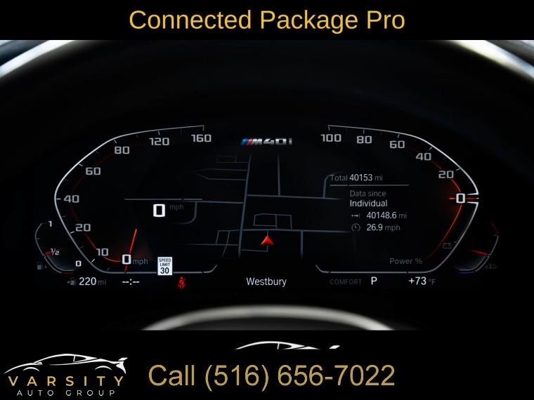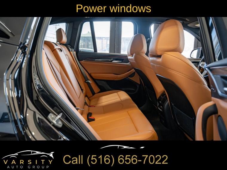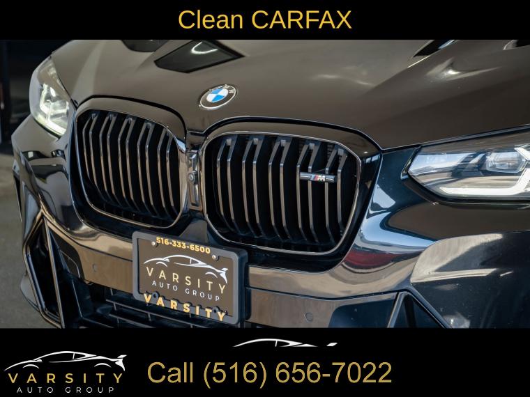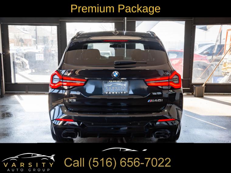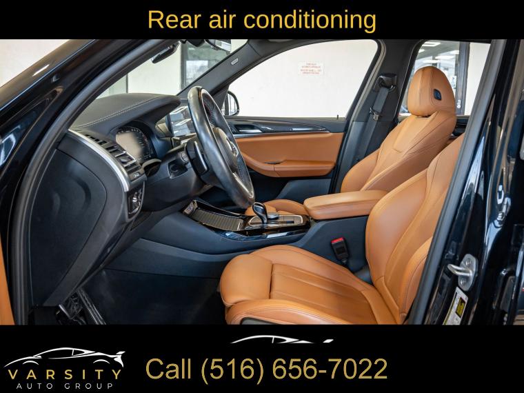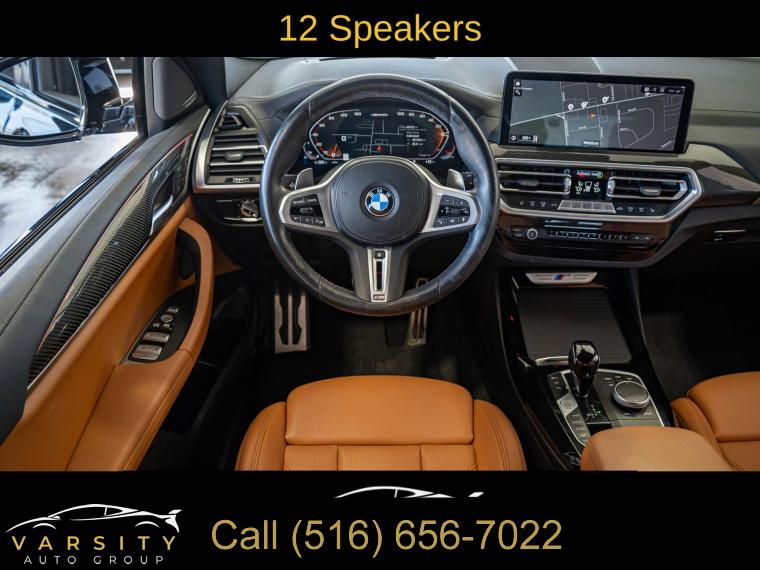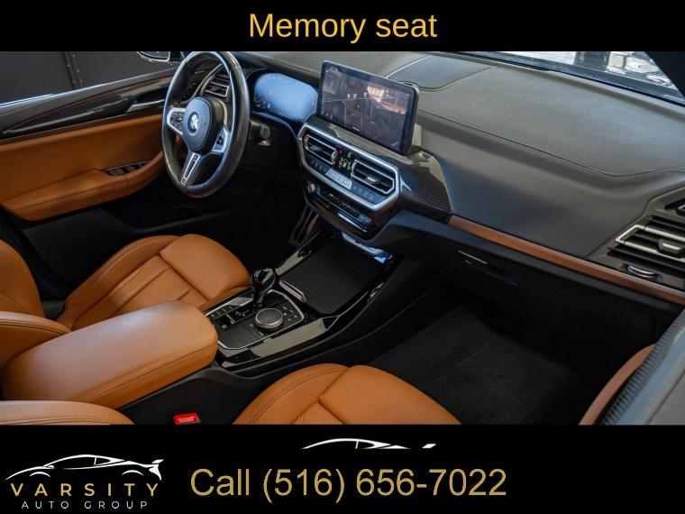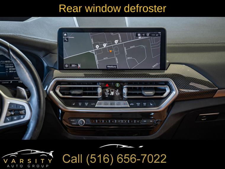 Navigation System, Connected Package Pro, Parking Assistance Package, Premium Package, Shadowline Package, 12 Speakers, AM/FM Radio, AM/FM radio: SiriusXM, ConnectedDrive Services, harman/kardon Surround Sound System, Hi-Fi Sound System, Radio data system, SiriusXM w/360L & 1 Yr Platinum Plan Subscription, Air Conditioning, Automatic temperature control, Front dual zone A/C, Rear air conditioning, Rear window defroster, Head-Up Display, Lumbar Support, Memory seat, Power driver seat, Power steering, Power windows, Remote keyless entry, Steering wheel mounted audio controls, Adaptive suspension, Four wheel independent suspension, Speed-sensing steering, Traction control, 4-Wheel Disc Brakes, ABS brakes, Dual front impact airbags, Dual front side impact airbags, Emergency communication system: BMW Assist eCall, Front anti-roll bar, Increased Top Speed Limiter, Knee airbag, Low tire pressure warning, M Sport Brakes w/Red Calipers, Occupant sensing airbag, Overhead airbag, Rear anti-roll bar, Power moonroof, Power Liftgate, Brake assist, Electronic Stability Control, Exterior Parking Camera Rear, Rear-View Camera, Auto High-beam Headlights, Delay-off headlights, Fully automatic headlights, Panic alarm, Security system, Speed control, Auto-dimming door mirrors, Bumpers: body-color, Extended Shadowline Trim, Heated door mirrors, M Shadowline Lights, Parking Assistant Plus, Power door mirrors, Spoiler, Turn signal indicator mirrors, Active Park Distance Control, Apple CarPlay & Android Auto Compatibility, Auto-dimming Rear-View mirror, BMW Assist eCall, BMW TeleServices, Carbon Fiber Trim, Driver door bin, Driver vanity mirror, Enhanced USB & Bluetooth w/Smartphone Integration, Front reading lights, Garage door transmitter, Heated Steering Wheel, Illuminated entry, Leather steering wheel, Live Cockpit Pro w/Navigation, Outside temperature display, Overhead console, Passenger vanity mirror, Rear reading lights, Rear seat center armrest, Sport steering wheel, Surround View w/3D View, Tachometer, Telescoping steering wheel, Tilt steering wheel, Trip computer, WiFi Hotspot, Wireless Charging, Front & Rear Heated Seats, Front Bucket Seats, Front Center Armrest, Heated Front Seats, Perforated SensaTec Upholstery, Power Front Seats, Power passenger seat, Split folding rear seat, Sport Seats, Passenger door bin, Alloy wheels, Wheels: 19" x 7.5" M Y-Spoke Bi-Color (Style 887M), Wheels: 21" x 8.5" Fr & 21" x 9.5" Rr (Style 718M), Rain sensing wipers, Rear window wiper, Speed-Sensitive Wipers, Variably intermittent wipers, 3.385 Axle Ratio, 2024 BMW X3 M40i, Black Sapphire Metallic, Cognac w/Perforated SensaTec Upholstery, Clean CARFAX
