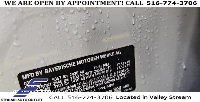 Navigation, Navigation System, Connected Package Pro, Convenience Package, 12 Speakers, AM/FM Radio, AM/FM radio: SiriusXM, ConnectedDrive Services, Hi-Fi Sound System, Radio data system, SiriusXM w/360L & 1 Yr Platinum Plan Subscription, Air Conditioning, Automatic temperature control, Front dual zone A/C, Rear air conditioning, Rear window defroster, Lumbar Support, Memory seat, Power driver seat, Power steering, Power windows, Remote keyless entry, Steering wheel mounted audio controls, Four wheel independent suspension, Speed-sensing steering, Traction control, 4-Wheel Disc Brakes, ABS brakes, Dual front impact airbags, Dual front side impact airbags, Emergency communication system: BMW Assist eCall, Front anti-roll bar, Knee airbag, Low tire pressure warning, Occupant sensing airbag, Overhead airbag, Rear anti-roll bar, Panoramic Moonroof, Power Liftgate, Brake assist, Electronic Stability Control, Exterior Parking Camera Rear, Auto High-beam Headlights, Delay-off headlights, Fully automatic headlights, Panic alarm, Security system, Speed control, Auto-dimming door mirrors, Bumpers: body-color, Heated door mirrors, Power door mirrors, Spoiler, Turn signal indicator mirrors, Apple CarPlay & Android Auto Compatibility, Auto-dimming Rear-View mirror, BMW Assist eCall, BMW TeleServices, Driver door bin, Driver vanity mirror, Enhanced USB & Bluetooth w/Smartphone Integration, Front reading lights, Garage door transmitter, Genuine wood dashboard insert, Genuine wood door panel insert, Illuminated entry, Leather steering wheel, Outside temperature display, Passenger vanity mirror, Rear reading lights, Rear seat center armrest, Sport steering wheel, Tachometer, Telescoping steering wheel, Tilt steering wheel, Trip computer, WiFi Hotspot, Front Bucket Seats, Front Center Armrest, Perforated SensaTec Upholstery, Power Front Seats, Power passenger seat, Split folding rear seat, Sport Seats, Passenger door bin, Alloy wheels, Wheels: 19" x 7.5" Y-Spoke (Style 693), Rain sensing wipers, Rear window wiper, Speed-Sensitive Wipers, Variably intermittent wipers, 3.385 Axle Ratio, * NYS INSPECTION INCLUDED *, * FULL INTERIOR / EXTERIOR DETAIL *, * BACK UP CAMERA *, * BLUETOOTH *, * LIMITED NYS LEMON LAW WARRANTY INCLUDED *, *FRESH OIL CHANGE *, * 150 MULTI POINT INSPECTION *
