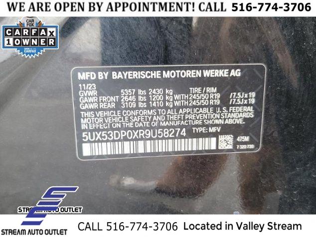 Navigation, Navigation System, Connected Package Pro, Premium Package, 12 Speakers, AM/FM Radio, AM/FM radio: SiriusXM, ConnectedDrive Services, Hi-Fi Sound System, Radio data system, SiriusXM w/360L & 1 Yr Platinum Plan Subscription, Air Conditioning, Automatic temperature control, Front dual zone A/C, Rear air conditioning, Rear window defroster, Head-Up Display, Lumbar Support, Memory seat, Power driver seat, Power steering, Power windows, Remote keyless entry, Steering wheel mounted audio controls, Four wheel independent suspension, Speed-sensing steering, Traction control, 4-Wheel Disc Brakes, ABS brakes, Dual front impact airbags, Dual front side impact airbags, Emergency communication system: BMW Assist eCall, Front anti-roll bar, Knee airbag, Low tire pressure warning, Occupant sensing airbag, Overhead airbag, Rear anti-roll bar, Panoramic Moonroof, Power Liftgate, Brake assist, Electronic Stability Control, Exterior Parking Camera Rear, Auto High-beam Headlights, Delay-off headlights, Fully automatic headlights, Panic alarm, Security system, Speed control, Auto-dimming door mirrors, Bumpers: body-color, Heated door mirrors, Power door mirrors, Spoiler, Turn signal indicator mirrors, Apple CarPlay & Android Auto Compatibility, Auto-dimming Rear-View mirror, BMW Assist eCall, BMW TeleServices, Driver door bin, Driver vanity mirror, Enhanced USB & Bluetooth w/Smartphone Integration, Front reading lights, Garage door transmitter, Genuine wood dashboard insert, Genuine wood door panel insert, Heated Steering Wheel, Illuminated entry, Leather steering wheel, Live Cockpit Pro w/Navigation, Outside temperature display, Passenger vanity mirror, Rear reading lights, Rear seat center armrest, Sport steering wheel, Tachometer, Telescoping steering wheel, Tilt steering wheel, Trip computer, WiFi Hotspot, Front Bucket Seats, Front Center Armrest, Heated Front Seats, Perforated SensaTec Upholstery, Power Front Seats, Power passenger seat, Split folding rear seat, Sport Seats, Passenger door bin, Alloy wheels, Wheels: 19" x 7.5" Y-Spoke (Style 693), Rain sensing wipers, Rear window wiper, Speed-Sensitive Wipers, Variably intermittent wipers, 3.385 Axle Ratio, * NYS INSPECTION INCLUDED *, * FULL INTERIOR / EXTERIOR DETAIL *, * BLUETOOTH *, * LIMITED NYS LEMON LAW WARRANTY INCLUDED *, *FRESH OIL CHANGE *, * 150 MULTI POINT INSPECTION *