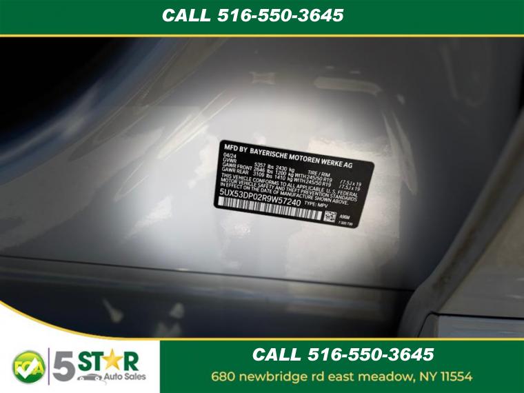 For more information on this 2024 BMW X3, please call 5 Star Auto Sales at (516) 550-3645 or with the contact form on this page. This vehicle's vin number is 5UX53DP02R9W57240 and is recorded as being in stock at 5 Star Auto Sales at 680 Newbridge Rd in East Meadow. See all cars from this dealership.