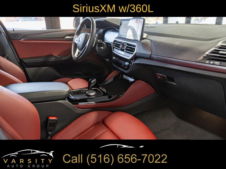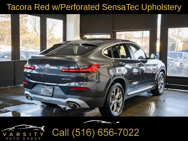 2024 BMW X4 xDrive30i, Dark Graphite Metallic, Tacora Red w/Perforated SensaTec Upholstery, Convenience Package, Connected Package Pro, Parking Assistance Package, Apple CarPlay & Android Auto Compatibility, Remote Engine Start, One Owner, Clean CARFAX, 12 Speakers, 3.39 Axle Ratio, 4-Wheel Disc Brakes, ABS brakes, Active Park Distance Control, Air Conditioning, Alloy wheels, AM/FM radio: SiriusXM with 360L, Anti-whiplash front head restraints, Apple CarPlay & Android Auto Compatibility, Auto High-beam Headlights, Auto-dimming door mirrors, Auto-dimming Rear-View mirror, Automatic temperature control, BMW Assist eCall, BMW TeleServices, Brake assist, Bumpers: body-color, Comfort Access Keyless Entry, Connected Package Pro, Convenience Package, Delay-off headlights, Driver door bin, Driver vanity mirror, Dual front impact airbags, Dual front side impact airbags, Electronic Stability Control, Emergency communication system: BMW Assist eCall, Enhanced USB & Bluetooth w/Smartphone Integration, Exterior Parking Camera Rear, Fine Wood Open-Pored Ash Grain Trim, Four wheel independent suspension, Front anti-roll bar, Front Bucket Seats, Front Center Armrest, Front dual zone A/C, Front reading lights, Fully automatic headlights, Garage door transmitter, Genuine wood dashboard insert, Genuine wood door panel insert, Heated door mirrors, Heated Front Seats, Heated Steering Wheel, Hi-Fi Sound System, Illuminated entry, Knee airbag, Leather steering wheel, Live Cockpit Pro w/Navi, Low tire pressure warning, Lumbar Support, Memory seat, Navigation System, Occupant sensing airbag, Outside temperature display, Overhead airbag, Overhead console, Panic alarm, Parking Assistance Package, Parking Assistant Plus, Passenger door bin, Passenger vanity mirror, Perforated SensaTec Upholstery, Power door mirrors, Power driver seat, Power Front Seats, Power Liftgate, Power moonroof: Panorama, Power passenger seat, Power steering, Power windows, Radio data system, Radio: AM/FM Audio System, Rain sensing wipers, Rear air conditioning, Rear anti-roll bar, Rear reading lights, Rear seat center armrest, Rear window defroster, Rear-View Camera, Remote Engine Start, Remote keyless entry, Security system, SiriusXM w/360L, Speed control, Speed-sensing steering, Speed-Sensitive Wipers, Split folding rear seat, Sport Seats, Sport steering wheel, Steering wheel mounted audio controls, Surround View w/3D View, Tachometer, Telescoping steering wheel, Tilt steering wheel, Traction control, Trip computer, Turn signal indicator mirrors, Variably intermittent wipers, Wheels: 19" x 7.5" Y-Spoke (Style 693), WiFi Hotspot. Dark Graphite Metallic 2024 BMW X4 xDrive30i AWD 8-Speed Automatic Sport 2.0L I4 TwinPower Turbo Odometer is 16798 miles below market average! 21/28 City/Highway MPG
