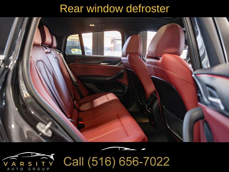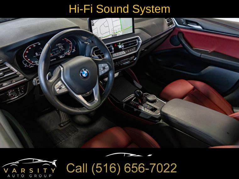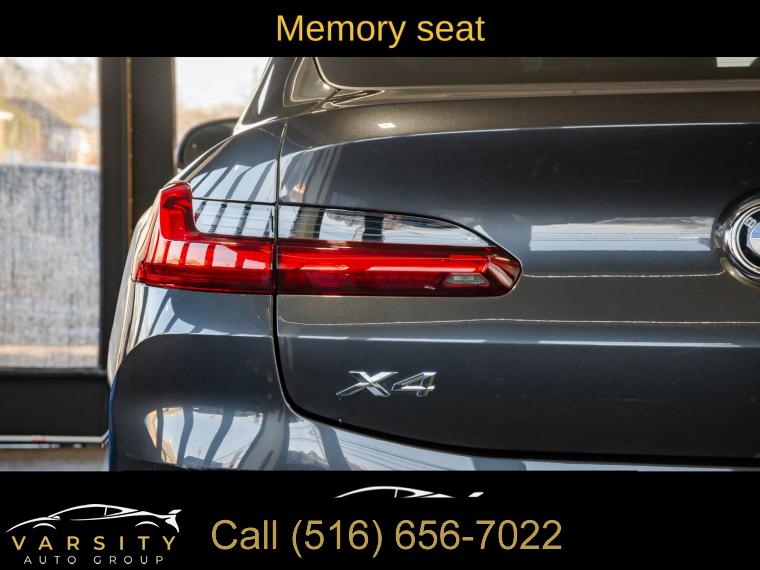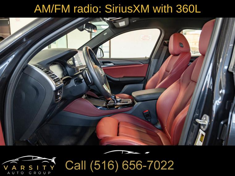 Navigation System, Connected Package Pro, Convenience Package, Parking Assistance Package, 12 Speakers, AM/FM radio: SiriusXM with 360L, Hi-Fi Sound System, Radio data system, Radio: AM/FM Audio System, SiriusXM w/360L, Air Conditioning, Automatic temperature control, Front dual zone A/C, Rear air conditioning, Rear window defroster, Comfort Access Keyless Entry, Lumbar Support, Memory seat, Power driver seat, Power steering, Power windows, Remote Engine Start, Remote keyless entry, Steering wheel mounted audio controls, Four wheel independent suspension, Speed-sensing steering, Traction control, 4-Wheel Disc Brakes, ABS brakes, Anti-whiplash front head restraints, Dual front impact airbags, Dual front side impact airbags, Emergency communication system: BMW Assist eCall, Front anti-roll bar, Knee airbag, Low tire pressure warning, Occupant sensing airbag, Overhead airbag, Rear anti-roll bar, Power moonroof: Panorama, Power Liftgate, Brake assist, Electronic Stability Control, Exterior Parking Camera Rear, Rear-View Camera, Auto High-beam Headlights, Delay-off headlights, Fully automatic headlights, Panic alarm, Security system, Speed control, Auto-dimming door mirrors, Bumpers: body-color, Heated door mirrors, Power door mirrors, Turn signal indicator mirrors, Active Park Distance Control, Apple CarPlay & Android Auto Compatibility, Auto-dimming Rear-View mirror, BMW Assist eCall, BMW TeleServices, Driver door bin, Driver vanity mirror, Enhanced USB & Bluetooth w/Smartphone Integration, Fine Wood Open-Pored Ash Grain Trim, Front reading lights, Garage door transmitter, Genuine wood dashboard insert, Genuine wood door panel insert, Heated Steering Wheel, Illuminated entry, Leather steering wheel, Live Cockpit Pro w/Navi, Outside temperature display, Overhead console, Parking Assistant Plus, Passenger vanity mirror, Rear reading lights, Rear seat center armrest, Sport steering wheel, Surround View w/3D View, Tachometer, Telescoping steering wheel, Tilt steering wheel, Trip computer, WiFi Hotspot, Front Bucket Seats, Front Center Armrest, Heated Front Seats, Perforated SensaTec Upholstery, Power Front Seats, Power passenger seat, Split folding rear seat, Sport Seats, Passenger door bin, Alloy wheels, Wheels: 19" x 7.5" Y-Spoke (Style 693), Rain sensing wipers, Speed-Sensitive Wipers, Variably intermittent wipers, 3.39 Axle Ratio, 2024 BMW X4 xDrive30i, Dark Graphite Metallic, Tacora Red w/Perforated SensaTec Upholstery, One Owner, Clean CARFAX