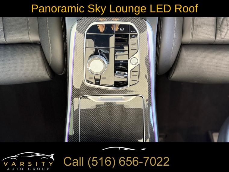 Navigation System, Climate Comfort Package, Connected Package Pro, Executive Package, 16 Speakers, AM/FM radio: SiriusXM with 360L, AM/FM Stereo, Apple CarPlay Compatibility, Bowers & Wilkins Diamond Surround Sound System, harman/kardon Surround Sound System, harman/kardonĀ® Speakers, Radio data system, SiriusXM w/360L, 4-Zone Automatic Climate Control, 4-Zone Automatic Climate Control (DISC), Air Conditioning, Automatic temperature control, Front dual zone A/C, Rear window defroster, Head restraints memory, Heads-Up Display, Memory seat, Power driver seat, Power steering, Power windows, Remote keyless entry, Steering wheel mounted audio controls, Adaptive suspension, Four wheel independent suspension, Speed-sensing steering, Traction control, 4-Wheel Disc Brakes, ABS brakes, Dual front impact airbags, Dual front side impact airbags, Emergency communication system: BMW Assist eCall, Front anti-roll bar, Increased Top Speed Limiter, Knee airbag, Low tire pressure warning, Occupant sensing airbag, Overhead airbag, Power adjustable front head restraints, Rear anti-roll bar, Panoramic Sky Lounge LED Roof, Power moonroof, Soft-Close Automatic Doors, Brake assist, Electronic Stability Control, Exterior Parking Camera Rear, Auto High-beam Headlights, Delay-off headlights, Fully automatic headlights, Panic alarm, Security system, Speed control, Auto-dimming door mirrors, Bumpers: body-color, Heated door mirrors, Power door mirrors, Spoiler, Turn signal indicator mirrors, Anthracite Alcantara Headliner, Apple CarPlay & Android Auto Compatibility, Auto tilt-away steering wheel, Auto-dimming Rear-View mirror, BMW Assist eCall, BMW TeleServices, Carbon Fiber Trim, Compass, ConnectedDrive Services, Driver door bin, Driver vanity mirror, Front reading lights, Garage door transmitter, Genuine wood console insert, Genuine wood dashboard insert, Genuine wood door panel insert, Gesture Control, Glass Controls, Illuminated entry, Leather Dashboard, Leather Shift Knob, Leather steering wheel, Live Cockpit Pro, Outside temperature display, Passenger vanity mirror, Personal eSIM 5G, Rear reading lights, Rear seat center armrest, Sport steering wheel, Tachometer, Telescoping steering wheel, Tilt steering wheel, Trip computer, Wireless Device Charging, Front & Rear Heated Seats, Front Bucket Seats, Front Center Armrest, Front Ventilated Seats, Heated Front Seats, Heated front seats, Heated Front Seats, Armrests & Steering Wheel, Multi-Contour Seats, Power Front Seats, Power passenger seat, Sensafin Upholstery, Split folding rear seat, Ventilated front seats, Passenger door bin, Alloy wheels, Wheels: 20" x 9" M Star-Spoke Bi-Color, Wheels: 22" x 9.5" Fr & 22" x 10.5" Rr Black, Rear Manual Side Window Shades, Rain sensing wipers, Rear window wiper, Speed-Sensitive Wipers, Variably intermittent wipers, 3.15 Axle Ratio, The Price you See, is the Price You Pay!!!, Frozen Pure Grey Metallic, M Sport Professional Package