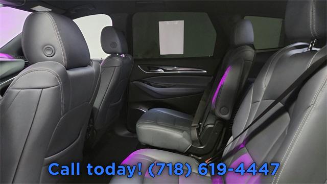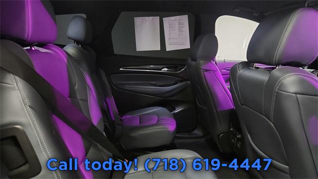 Navigation System, Preferred Equipment Group 1SN, 10 Speakers, AM/FM radio: SiriusXM with 360L, Bose Performance-Enhanced 10-Speaker System, Premium audio system: Buick Infotainment System, Radio data system, Radio: Buick Infotainment Sys AM/FM Stereo w/Nav, SiriusXM w/360L, Air Conditioning, Automatic temperature control, Front dual zone A/C, Rear air conditioning, Rear window defroster, 6-Way Power Front Passenger Seat Adjuster, 8-Way Power Driver Seat Adjuster, Heads-Up Display, Memory seat, Power driver seat, Power steering, Power windows, Remote keyless entry, Steering wheel memory, Steering wheel mounted audio controls, Four wheel independent suspension, Speed-sensing steering, Traction control, 4-Wheel Disc Brakes, ABS brakes, Dual front impact airbags, Dual front side impact airbags, Emergency communication system: OnStar and Buick connected services capable, Front anti-roll bar, Low tire pressure warning, Occupant sensing airbag, Overhead airbag, Rear anti-roll bar, Power Liftgate, Brake assist, Electronic Stability Control, Exterior Parking Camera Rear, Auto High-beam Headlights, Delay-off headlights, Fully automatic headlights, Panic alarm, Security system, Speed control, Auto-dimming door mirrors, Bumpers: body-color, Heated door mirrors, Power door mirrors, Roof rack: rails only, Spoiler, Turn signal indicator mirrors, Auto-dimming Rear-View mirror, Compass, Driver door bin, Driver vanity mirror, Front reading lights, Garage door transmitter, Heated steering wheel, Illuminated entry, Leather steering wheel, Outside temperature display, Overhead console, Passenger vanity mirror, Rear reading lights, Tachometer, Telescoping steering wheel, Tilt steering wheel, Trip computer, Vehicle Health Management, Voltmeter, Wireless Apple CarPlay/Wireless Android Auto, 3rd row seats: split-bench, 7-Passenger Seating, Driver 4-Way Power Lumbar Seat Adjuster, Front Bucket Seats, Front Center Armrest, Front Passenger 4-Way Power Lumbar Seat Adjuster, Heated Driver & Front Passenger Seats, Heated front seats, Heated rear seats, Perforated Leather-Appointed Seat Trim, Power passenger seat, Ventilated Driver & Front Passenger Seats, Ventilated front seats, Passenger door bin, 18" Aluminum Wheels, Alloy wheels, Rear window wiper, Variably intermittent wipers, 3.49 Final Drive Axle Ratio