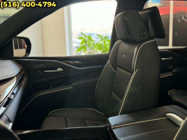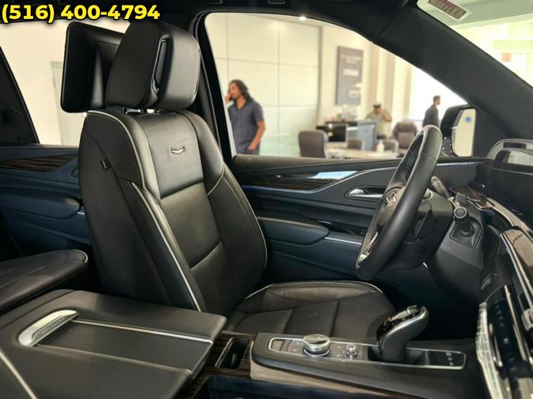 • 10-Speed A/T, ABS, 4-Wheel Disc Brakes, 8 Cylinder Engine, A/C, A/T, Adaptive Cruise Control, 3rd Row Seat, Adjustable Steering Wheel, Aerial View Display System, Security System, Aluminum Wheels, AM/FM Stereo, Transmission w/Dual Shift Mode, Automatic Headlights, Automatic Highbeams, Automatic Parking, Auxiliary Audio Input, Back-Up Camera, Blind Spot Monitor, Brake Assist, Bucket Seats, Child Safety Locks, Climate Control, Cooled Front Seat(s), Cross-Traffic Alert, Cruise Control, Cruise Control Steering Assist, Driver Air Bag, Driver Adjustable Lumbar, Driver Monitoring, Driver Restriction Features, Multi-Zone A/C, Stability Control, Four Wheel Drive, Front Collision Mitigation, Front Collision Warning, Floor Mats, Gasoline Fuel, Hands-Free Liftgate, HD Radio, Heads-Up Display, Heated Front Seat(s), Heated Mirrors, Heated Rear Seat(s), Heated Steering Wheel, Integrated Turn Signal Mirrors, Intermittent Wipers, Keyless Entry, Keyless Start, Lane Departure Warning, Lane Keeping Assist, Leather Seats, Locking/Limited Slip Differential, Luggage Rack, Mirror Memory, MP3 Capability, Navigation System, Telematics, Panoramic Roof, Pass-Through Rear Seat, Passenger Air Bag, Passenger Air Bag Sensor, Passenger Adjustable Lumbar, Power Door Locks, Power Mirror(s), Power Driver Seat, Power Folding Mirrors, Power Liftgate, Power Passenger Seat, Power Steering, Power Windows, Premium Sound System, Privacy Glass, Rain Sensing Wipers, Rear A/C, Rear Collision Mitigation, Rear Defrost, Rear Head Air Bag, Rear Parking Aid, Remote Engine Start, Remote Trunk Release, Requires Subscription, Running Boards/Side Steps, Satellite Radio, Seat Memory, Front Side Air Bag, Front Head Air Bag, Smart Device Integration, Steering Wheel Audio Controls, Generic Sun/Moonroof, Tire Pressure Monitor, Tires - Front All-Season, Tires - Rear All-Season, Traction Control, Tow Hitch, Transmission Overdrive Switch, Universal Garage Door Opener, Variable Speed Intermittent Wipers, Immobilizer, WiFi Hotspot, Bluetooth Connection, Active Aero Shutters, front (Deleted when (LM2) 3.0L Turbo Diesel engine is ordered.), Assist steps, running board (Upgradeable to (B3L) power-retractable assist steps.), Door handles, Galvano accents, Door handles, illuminating, Glass, acoustic, laminated windshield, Glass, deep-tinted, Hands-Free Liftgate open and close, programmable memory height, with Cadillac branded projection light, Headlamp control, automatic leveling system, Headlamps, automatic on/off, Headlamps, LED, IntelliBeam, automatic high beam on/off, Luggage rack, roof-mounted, Chrome, Mirrors, outside heated power-adjustable power-folding, body-color, driver-side auto-dimming, integrated turn signal indicators and puddle lighting, Moldings, Galvano bodyside, Rear Camera Mirror Washer, Spare tire lock, hoist shaft, Sunroof, power, panoramic with tilt, slide, express-open/close and sun shade control, Tail lamps, LED illumination, Tire, spare 265/70R17SL all-season, blackwall, Tires, 275/50R22SL all-season, blackwall, Wheels, 22" (55.9 cm) 14-Spoke alloy with Polished finish, Windshield, solar absorbing, Wiper, rear intermittent, Wipers, front intermittent, Rainsense, Adaptive Cruise Control, Adaptive Remote Start, Air conditioning, rear, Air filter, pollutant, odor and fine dust, Ambient lighting, interior, selectable, Augmented Reality live image of what is in front of the vehicle displayed on the 14.2" diagonal Cluster Display. When a navigational route is active, the system will overlay directional information on the live image being displayed, Climate control, tri-zone automatic with individual climate settings for driver, right-front passenger and rear passengers (includes rear air vents), Console, floor with covered storage, large and small storage bins, dual cup holders, electronic climate controls and second row heated seat controls. Also includes auxiliary power outlet, USB A/C ports and 110-volt outlet, Console, overhead, Defogger, rear-window, Door lock and latch shields, Door locks, power programmable with lockout protection and delayed locking, Floor covering, color-keyed carpeting, Floor mats, color-keyed carpeted first and second row, removable (Deleted when (VYW) Premium carpeted floor mats, LPO is ordered.), Head-Up Display, full-color, reconfigurable (includes the following views: Speed, Audio/Phone, Navigation and Performance), Keyless Open includes extended range Remote Keyless Entry, Memory settings includes two "presets" for driver seat adjuster, outside mirrors and power tilt/telescoping steering column, Power outlet, 110-volt, Power outlet, front auxiliary, 12-volt, located in front console (Standard with (D07) Floor console with covered storage only.), Rear Camera Mirror, Seat adjuster, driver 4-way power lumbar, Seat adjuster, driver 8-way power, Seat adjuster, front passenger 4-way power lumbar, Seat adjuster, front passenger 8-way power, Seat trim, Leather, Seats, front bucket (Includes 12-way driver and front passenger adjustments.), Seats, heated and ventilated driver and front passenger, Seats, heated driver and front passenger, Seats, heated second row outboard seats, Seats, second row bucket, power release (May substitute (ATT) second row 60/40 split-folding bench seats.), Seats, third row 60/40 split-bench, power-folding, Sensor, glass breakage, Sensor, vehicle inclination, Sensor, vehicle interior movement, Steering column lock, electrical, Steering column, power tilt and telescoping, Steering wheel controls, audio, phone, cruise control Conversation Enhancement, gap distance and heated steering wheel, Steering wheel, heated, automatic, Steering wheel, wrapped with mounted audio and cruise controls, Super Cruise a hands-free driver assistance system for use on compatible roads (Always pay attention while driving and when using Super Cruise. Do not use a hand-held device. Visit cadillac.com/supercruise for compatible roads and full details.), Theft-deterrent alarm system, content theft alarm, self-