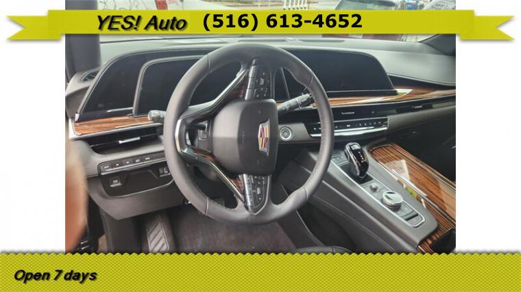 Air filtration: ionizing, Front air conditioning: automatic climate control, Front air conditioning zones: dual, Rear air conditioning: automatic climate control / independently controlled, Rear air conditioning zones: single, Rear vents: third row, Airbag deactivation: occupant sensing passenger, Front airbags: center / dual, Side airbags: front, Side curtain airbags: front / rear / third row, Antenna type: diversity / mast, Auxiliary audio input: Bluetooth / iPod/iPhone / USB, Internet radio app: Pandora, Premium brand: AKG, Radio: AM/FM / HD radio / touch screen display / voice operated, Radio data system, Satellite radio: SiriusXM, Speed sensitive volume control, Subwoofer: 1, Surround sound: 5.1, Total speakers: 18, ABS: 4-wheel, Braking assist, Electronic brakeforce distribution, Electronic parking brake: auto off, Front brake type: ventilated disc, Power brakes, Rear brake type: ventilated disc, Armrests: rear outboard seats, Center console trim: wood, Dash trim: wood, Door trim: wood, Floor mat material: carpet, Floor material: carpet, Floor mats: front / rear, Heated steering wheel, Interior accents: woodgrain, Shift knob trim: chrome, Steering wheel trim: leatherette / wood, Ambient lighting: color-adjustable, Assist handle: front / rear, Capless fuel filler system, Cargo area light, Center console: front console with armrest and storage, Courtesy lights: door, Cruise control, Cupholders: front / rear / third row, Memorized settings: 2 driver / driver seat / liftgate / side mirrors / steering wheel, Multi-function remote: panic alarm / proximity entry system / trunk release, One-touch windows: 4, Overhead console: front, Power outlet(s): 115V cargo area / 115V rear / 12V front / USB front / USB-C cargo area / USB-C front / USB-C rear, Power steering: variable/speed-proportional, Power windows: lockout button, Push-button start, Reading lights: front / rear, Rearview mirror: auto-dimming, Remote engine start, Steering wheel: power tilt and telescopic, Steering wheel mounted controls: audio / cruise control / multi-function / phone / voice control, Storage: cargo tie-down anchors and hooks / door pockets / front seatback / sunglasses holder, Universal remote transmitter: garage door opener, Vanity mirrors: dual illuminating, Wireless charging station: front, Active grille shutters, Body side moldings: aluminum, Door handle color: aluminum, Exhaust: dual tip, Exhaust tip color: polished aluminum, Front bumper color: body-color, Grille color: aluminum, Mirror color: body-color, Rear bumper color: body-color, Rear spoiler: roofline, Rear spoiler color: body-color, Rear trunk/liftgate: liftgate / power operated / sensor-activated, Rocker panel color: black, Running board color: black, Running boards, Window trim: aluminum, Connected in-car apps: app marketplace integration / Google POIs / Google search, Infotainment: Cadillac Infotainment System, Infotainment screen size: 16.9 in., Smartphone integration: wireless Android Auto / wireless Apple CarPlay, Clock, Compass, Customizable instrument cluster, Digital odometer, External temperature display, Fuel economy display: MPG / range, Gauge: tachometer, Instrument cluster screen size: 7.2 in. and 14.2 in. (dual), Multi-function display, Trip odometer, Warnings and reminders: low battery / low fuel level / low oil level / maintenance due, Daytime running lights: LED, Exterior entry lights: approach lamps / puddle lamps, Headlights: auto delay off / auto high beam dimmer / auto on/off / LED / self-leveling / wiper activated, Taillights: LED, Side mirror adjustments: power / power folding / reverse gear tilt, Side mirrors: driver side auto-dimming / heated / integrated turn signals, 4WD selector: electronic, 4WD type: part time w/ on demand setting, Alternator: 220 amps, Auto start/stop, Auxiliary oil cooler, Auxiliary transmission fluid cooler, Battery: heavy duty / maintenance-free, Battery rating: 800 CCA, Battery saver, Limited slip differential: rear, Roof rails: chrome, Automatic emergency braking: front / front pedestrian, Camera system: surround view, Check rear seat reminder, Child safety door locks, Child seat anchors: LATCH system, Crumple zones: front / rear, Dash camera: front recording / rear recording / side recording, Lane deviation sensors, Lane keeping assist, Parking sensors: front / rear, Pre-collision warning system: audible warning / pedestrian detection / vibrating driver seat / visual warning, Programmable safety key, Rear pre-collision warning system: pedestrian detection, Rearview monitor: in dash, Emergency locking retractors: front / rear, Front seatbelts: 3-point, Rear seatbelts: 3-point, Seatbelt force limiters: front, Seatbelt pretensioners: front, Seatbelt warning sensor: front, Third row seatbelts: 3-point, Driver seat: heated, Driver seat power adjustments: 12 / 4-way power lumbar / height / reclining, Front headrests: 2 / adjustable, Front seat type: bucket, Passenger seat: heated, Passenger seat power adjustments: 12 / 4-way power lumbar / height / reclining, Rear headrests: 2 / adjustable, Rear seat: heated / power return, Rear seat manual adjustments: reclining, Rear seat type: bucket, Third row headrests: 2 / adjustable, Third row seat folding: flat / power / split, Third row seat type: 40-60 split bench, Upholstery: leatherette, Anti-theft system: alarm / vehicle immobilizer, Power door locks: anti-lockout / auto-locking, Hill holder control, Roll stability control, Stability control, Traction control, Trailer stability control, Front shock type: gas, Front spring type: coil, Front stabilizer bar, Front struts, Front suspension classification: independent, Front suspension type: upper and lower control arms, Rear shock type: gas, Rear spring type: coil, Rear stabilizer bar, Rear struts, Rear suspension classification: independent, Rear suspension type: multi-link, Driver assistance app: roadside assistance, Electronic messaging assistance: voice operated / with read function, Hands-free phone call in
