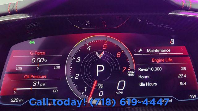 Preferred Equipment Group 3LT, Wheels: 19" x 8.5" Fr/20" x 11" Rr Bright Silver, Wheels: 19" x 8.5" Fr/20" x 11" Rr Midnight Gray, Carbon Flash Wheel Center Caps (LPO), Black Wheel Locks (LPO), Black Lug Nuts (LPO), GT2 Bucket Seats, Competition Sport Bucket Seats, Napa Lthr Seating Surfaces w/Perforated Inserts, Adrenaline Red Custom Leather Stitch, Radio: Chevrolet Infotainment 3 Premium System, Custom Interior Trim & Seat Combination, Performance Data & Video Recorder, Stealth Interior Trim Package, Carbon Fiber Interior Trim, Shadow Gray Exterior Accents (DISC), Front Lift Adjustable Height w/Memory, Front License Plate Bracket, Gray C8.R Premium Indoor Car Cover (LPO), Rear Corvette Script Painted Torch Red (LPO), Black Composite Rocker Extensions (LPO), Carbon Flash Metallic Painted Outside Mirrors, Battery Protection Package, Bright Red-Painted Calipers, Performance Exhaust w/Stainless-Steel Tips, Z51 Performance Package, 8-Way Power Driver Seat Adjuster, 8-Way Power Passenger Seat Adjuster, Driver Power Bolster Seat Adjuster, Passenger Power Bolster Seat Adjuster, Power Driver Lumbar Control Seat Adjuster, 2 Cargo Nets, Memory Driver & Passenger Convenience Package, Power Passenger Lumbar Control Seat Adjuster, Body-Color Removable Roof Panel, Carbon Flash Metallic-Painted Outside Mirrors, Power-Adjustable Outside Heated Mirrors, Z51 Performance Suspension, Electronic Limited-Slip Differential, Performance Rear Axle Ratio, Custom Leather Wrapped Interior Package, Sueded Microfiber-Wrapped Upper Interior Trim Pkg, Z51 Performance Brakes, Wireless Charging for Devices, Heated Steering Wheel, Heated & Vented Driver & Passenger Seats, Rear Z51 Spoiler, Automatic Leveling System Headlamp Control, Rear Cross Traffic Alert, Side Blind Zone Alert, Universal Home Remote, Bose Performance Series Sound System w/14 Speakers, Electrical Theft Deterrent System, Vehicle Inclination Theft Deterrent Sensor, Vehicle Interior Movement Theft Deterrent Sensor, Head-Up Display, HD Front & Rear Vision Cameras, Heavy-Duty Cooling System, 4-Wheel Disc Brakes, Premium audio system: Chevrolet Infotainment 3 Premium, Emergency communication system: OnStar and Chevrolet connected services capable, Auto High-beam Headlights, Exterior Parking Camera Rear, AM/FM radio: SiriusXM, Compass, 14 Speakers, Heads-Up Display, Auto-dimming Rear-View mirror, Front beverage holders, Ventilated front seats, Variably intermittent wipers, Turn signal indicator mirrors, Trip computer, Traction control, Tilt steering wheel, Telescoping steering wheel, Steering wheel mounted audio controls, Steering wheel memory, Sport steering wheel, Speed-sensing steering, Speed control, Security system, Remote keyless entry, Rear window defroster, Rear anti-roll bar, Radio data system, Power windows, Power steering, Power passenger seat, Power driver seat, Power door mirrors, Passenger vanity mirror, Passenger door bin, Panic alarm, Overhead console, Outside temperature display, Occupant sensing airbag, Memory seat, Low tire pressure warning, Leather steering wheel, Illuminated entry, Heated steering wheel, Heated front seats, Heated door mirrors, Garage door transmitter, Fully automatic headlights, Front reading lights, Front dual zone A/C, Front anti-roll bar, Four wheel independent suspension, Dual front side impact airbags, Dual front impact airbags, Driver vanity mirror, Driver door bin, Delay-off headlights, Bumpers: body-color, Brake assist, Automatic temperature control, Auto-dimming door mirrors, Alloy wheels, ABS brakes, Voltmeter, Tachometer, Navigation System, Leather Shift Knob, Front Center Armrest, Front Bucket Seats, Electronic Stability Control, Air Conditioning