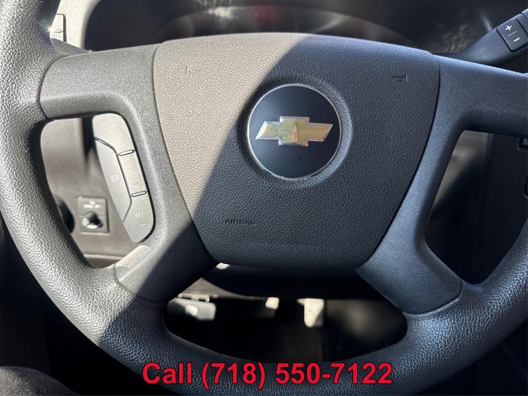Steel Wheels, Cruise Control, Third Row Removable Seat, Second Row Removable Seat, Steering Wheel Mounted Controls, Backup Camera, Power Steering, Anti-Lock Brakes, Driver Airbag, Passenger Airbag, Tinted Windows, Air Conditioning, Keyless Entry, Power Mirrors, Rear Air, AM/FM, Tilt Wheel, Power Locks, Power Windows, Third Row Seat, Rear axle- 3.42 ratio (Reference the Engine/Axle page for availability.), GVWR- 9600 lbs. (4354 kg) (Reference the Engine/Axle page for availability.), Cooling- External Engine Oil Cooler, Tow/haul mode selector- instrument panel-mounted, Rear-wheel drive, Battery- 600 cold-cranking amps- maintenance-free with rundown protection and retained accessory power, Alternator- 150 amps, Frame- ladder-type, Suspension- front independent with coil springs and stabilizer bar, Suspension- rear hypoid drive axle with multi-leaf springs, Steering- power-, Brakes- 4-wheel antilock- 4-wheel disc, Fuel tank capacity- mid-frame and approximately 31 gallons (117.3L), Exhaust- aluminized stainless-steel muffler and tailpipe, Tires- front LT245/75R16E all-season- blackwall, Tires- rear LT245/75R16E all-season- blackwall, Body- standard, Door- swing-out passenger-side- 60/40 split, Wheel trim- chrome center cap, Tire- spare LT245/75R16 all-season- blackwall, Chrome Appearance Package, Bumpers- front and rear chrome with step-pad (Included with (ZR7) Chrome Appearance Package.), Grille- chrome (Included and only available with (ZR7) Chrome Appearance Package.), Headlamps- dual halogen composite, Mirrors- outside heated power-adjustable- Black- manual-folding, Glass- Solar-Ray deep-tinted (all windows except light-tinted glass on windshield and driver- and front passenger-side glass), Glass- swing-out side door windows, Glass- swing-out rear cargo door windows, Glass- enhanced-technology- rearmost side windows. 3-layer special glass is designed to help reduce the risk of ejection during a crash, Glass- full-body window package (Includes (A18) swing-out rear cargo door window glass and (A19) swing-out side door window glass.), Wipers- front intermittent wet-arm with pulse washers, License plate kit- front, Console- deluxe with swing-out storage bin, Cup holders- 3 on the engine console cover, Floor covering- full-floor color-keyed carpeting with front and rear rubberized vinyl floor mats (Not available with (Y3H) Paratransit Package.), Steering wheel steel sleeve column with theft-deterrent locking feature- Black, Instrumentation- analog with speedometer- odometer with trip odometer- fuel level- voltmeter- engine temperature and oil pressure, Oil life monitor, Warning tones- headlamp on and key-in-ignition, Compass- 8-point digital located in the Driver Information Center, Theft Alarm Notification requires paid plan- working electrical system- cell reception- GPS signal- armed GM factory-installed theft-deterrent system- contact method on file and enrollment to receive alerts. Message and data rates may apply. See onstar.com for details and limitations (Included and only available with (ATG) Remote Keyless Entry. Requires (UE1) OnStar.), Theft-deterrent system- vehicle- PASS-Key III, Heater- rear auxiliary, Defogger- front and side windows, Headliner- cloth, Visors- driver and front passenger- padded with cloth trim and dual vanity mirrors- illuminated on passenger-side, Assist handles- driver and right-front passenger, Lighting- interior with 2 dome lights defeat switch and door handle-activated switches, Lighting- auxiliary with reading lights, Chevrolet Connected Access capable (Included and only available with (UE1) OnStar. Subject to terms. See onstar.com or dealer for details.), StabiliTrak- traction assistance and vehicle stability enhancement system, Brake/transmission shift interlock for automatic transmissions, Hill Start Assist, Door beams- steel-side, Daytime Running Lamps, Airbags- seat-mounted side-impact for driver and right-front passenger and roof-rail mounted head-curtain provides coverage for outboard seating positions for first 3-rows only. Enhanced-technology glass is provided for fourth row with (ZX5) 12-passenger seating and fourth and fifth rows with (ZP3) 15-passenger seating (Always use seat belts and child restraints. Children are safer when properly secured in a rear seat in the appropriate child restraint. See the Owner's Manual for more information.), Forward Collision Alert, Lane Departure Warning, Child seat anchors all three passenger rear seats have two anchors for outboard seating positions and tethers for two seating positions. See the Owner's Manual for more information