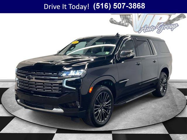 One owner. Black exterior and Jet Black interior, Premier trim. Heated Leather Seats, Third Row Seat, Nav System, 4x4, Quad Bucket Seats, Hitch, WHEELS, 22 X 9 (55.9 CM X 22.9 CM). ADVANCED TRAILERING PACKAGE, LPO, ALL-WEATHER FLOOR LINERS, 1ST AN. TRANSMISSION, 10-SPEED AUTOMATIC, ENGINE, 5.3L ECOTEC3 V8, AUDIO SYSTEM, CHEVROLET INFOTAINMENT. WHEELS, 22 X 9 (55.9 CM X 22.9 CM) POLISHED ALUMINUM. Approx. Original Base Sticker Price: $75,600*.KEY FEATURES INCLUDELeather Seats, NavigationOPTION PACKAGES22 X 9 (55.9 CM X 22.9 CM) POLISHED ALUMINUM Includes (SFE) wheel locks, LPO.), 1ST AND 2ND ROWS (dealer-installed), CHEVROLET INFOTAINMENT 3 PREMIUM SYSTEM WITH GOOGLE BUILT-IN compatibility (select service plan required, terms and limitations apply), including nav capability, 10.2 diagonal HD color touchscreen, includes multi-touch display, AM/FM stereo, Bluetooth® streaming audio for music and most phones; featuring wireless Apple CarPlay® and wireless Android Auto® capability for compatible phones, advanced voice recognition, in-vehicle apps, personalized profiles for infotainment and vehicle settings. (STD), 5.3L ECOTEC3 V8 with Dynamic Fuel Management, Direct Injection and Variable Valve Timing, includes aluminum block construction (355 hp [265 kW] @ 5600 rpm, 383 lb-ft of torque [518 Nm] @ 4100 rpm) (STD), TRANSMISSION, 10-SPEED AUTOMATIC electronically controlled with overdrive, includes Traction Select System including tow/haul (Standard with (L84) 5.3L EcoTec3 V8 engine or (L87) 6.2L EcoTec3 V8 engine only.) (STD), ADVANCED TRAILERING PACKAGE includes (PZ8) Hitch View, (JL1) trailer brake controller and (UET) Smart Trailer Integration Indicator Also includes (UKV) Extended Side Blind Zone Alert.). Chevrolet Premier with Black exterior and Jet Black interior features a 8 Cylinder Engine with 355 HP at 5600 RPM*.VISIT US TODAYWe hand select the finest automobiles possible, recondition as required so you do not have to worry about anything shortly down the road. Our Certified vehicles for example all have more than 50% brake life, most have brand new brakes installed front and rear and it does not end there.WESTBURY VIPAmericas #1 VIP Plus Program includes Complimentary Loaner Cars, UnlimitedOil & Filter changes for 1 yr. & then included with every factorymaintenance, Courtesy Shuttle to work, home or any other location, ExpressLube 30 minutes or less w/ no appointment necessary, Complimentary NYSI, 24/7 Rescue & Towing.