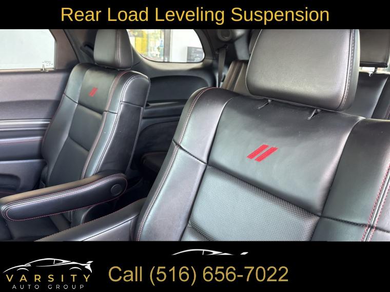 The Price you See, is the Price You Pay!!!, 5.7L Hemi V8, Clean CARFAX, AWD, 115V Auxiliary Power Outlet, 2nd Row Fold/Tumble Captain Chairs, 2nd Row Mini Console w/Cupholders, 2nd Row Seat Mounted Inboard Armrests, 3.09 Rear Axle Ratio, 3rd Row Floor Mat & Mini Console, 3rd row seats: split-bench, 4-Wheel Disc Brakes, 6-Passenger Seating, 7 & 4 Pin Wiring Harness, 9 Speakers, ABS brakes, Adaptive Cruise Control w/Stop, Air Conditioning, AM/FM radio: SiriusXM w/360L, Apple CarPlay/Android Auto, Auto High-beam Headlights, Auto-Dimming Exterior Driver Mirror, Auto-dimming Rear-View mirror, Auto-leveling suspension, Automatic temperature control, Black Roof Rails, Blacktop Package, Blind Spot w/Trailer Detection, Brake assist, Bumpers: body-color, Class IV Receiver Hitch, Cloth Bucket Seats w/Shift Insert, Compass, Delay-off headlights, Driver door bin, Driver vanity mirror, Dual front impact airbags, Dual front side impact airbags, Dual Remote USB Port - Charge Only, Electronic Stability Control, Emergency communication system, Exterior Mirrors w/Heating Element, Exterior Mirrors w/Memory, Exterior Mirrors w/Supplemental Signals, Floor Console w/Leather Armrest, Four wheel independent suspension, Front anti-roll bar, Front Bucket Seats, Front Center Armrest w/Storage, Front dual zone A/C, Front reading lights, Full Speed Forward Collision Warning Plus, Fully automatic headlights, Garage door transmitter, Gloss Black Badges, Gloss Black Exterior Mirrors, Heated door mirrors, Heated front seats, Heated Second Row Seats, Heated steering wheel, Illuminated entry, Integrated Roof Rail Crossbars, Knee airbag, Leather steering wheel, Leather Trimmed Bucket Seats, Leather Wrapped Door Panels, LED Auxiliary Low Beam & Turn Signal, Low tire pressure warning, Navigation system: TomTom, Occupant sensing airbag, Outside temperature display, Overhead airbag, Overhead console, Panic alarm, ParkView Rear Back-Up Camera, Passenger door bin, Passenger vanity mirror, Power 6x9 Multi-Function Foldaway Mirrors, Power 8-Way Driver Memory 8-Way Passenger Seats, Power door mirrors, Power driver seat, Power Driver/Passenger 4-Way Lumbar Adjust, Power Liftgate, Power steering, Power Sunroof, Power Tilt & Telescopic Steering Column, Power windows, Quick Order Package 22T R/T Plus, Radio data system, Radio: Uconnect 5 Nav w/10.1" Display, Radio/Driver Seat/Mirrors Memory, Rain sensing wipers, Rear air conditioning, Rear anti-roll bar, Rear Load Leveling Suspension, Rear reading lights, Rear seat center armrest, Rear window defroster, Rear window wiper, Red Accent Stitching, Remote keyless entry, Satin Black Dodge Tail Lamp Badge, Security system, Speed control, Speed-sensing steering, Speed-Sensitive Wipers, Split folding rear seat, Spoiler, Sport steering wheel, Steering wheel mounted audio controls, Tachometer, Telescoping steering wheel, Tilt steering wheel, Traction control, Trailer Brake Control, Trip computer, Upper/Lower Body Color Rear Fascia, Variably intermittent wipers, Ventilated Front Seats, Voltmeter, Wheels: 20" x 8.0" Black Noise Aluminum. DB Black Crystal Clearcoat 2024 Dodge Durango R/T Plus AWD 8-Speed Automatic HEMI 5.7L V8 Multi Displacement VVT Odometer is 21907 miles below market average!