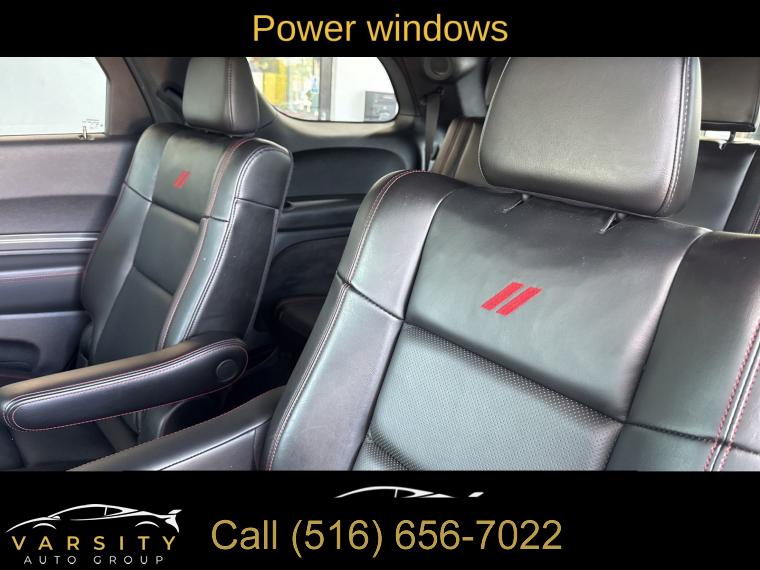 Navigation system: TomTom, Blacktop Package, Quick Order Package 22T R/T Plus, 9 Speakers, AM/FM radio: SiriusXM w/360L, Radio data system, Radio: Uconnect 5 Nav w/10.1" Display, Air Conditioning, Automatic temperature control, Front dual zone A/C, Rear air conditioning, Rear window defroster, Exterior Mirrors w/Memory, Heated Second Row Seats, Power driver seat, Power steering, Power windows, Radio/Driver Seat/Mirrors Memory, Remote keyless entry, Steering wheel mounted audio controls, Auto-leveling suspension, Four wheel independent suspension, Rear Load Leveling Suspension, Speed-sensing steering, Traction control, 4-Wheel Disc Brakes, ABS brakes, Dual front impact airbags, Dual front side impact airbags, Emergency communication system, Front anti-roll bar, Knee airbag, Low tire pressure warning, Occupant sensing airbag, Overhead airbag, Rear anti-roll bar, Power Sunroof, Power Liftgate, Brake assist, Electronic Stability Control, ParkView Rear Back-Up Camera, Auto High-beam Headlights, Delay-off headlights, Fully automatic headlights, Panic alarm, Security system, Adaptive Cruise Control w/Stop, Speed control, Auto-Dimming Exterior Driver Mirror, Bumpers: body-color, Exterior Mirrors w/Heating Element, Exterior Mirrors w/Supplemental Signals, Gloss Black Badges, Gloss Black Exterior Mirrors, Heated door mirrors, Power 6x9 Multi-Function Foldaway Mirrors, Power door mirrors, Satin Black Dodge Tail Lamp Badge, Spoiler, 115V Auxiliary Power Outlet, 2nd Row Mini Console w/Cupholders, 3rd Row Floor Mat & Mini Console, Apple CarPlay/Android Auto, Auto-dimming Rear-View mirror, Blind Spot w/Trailer Detection, Cloth Bucket Seats w/Shift Insert, Compass, Driver door bin, Driver vanity mirror, Dual Remote USB Port - Charge Only, Front reading lights, Full Speed Forward Collision Warning Plus, Garage door transmitter, Heated steering wheel, Illuminated entry, Leather steering wheel, Leather Wrapped Door Panels, LED Auxiliary Low Beam & Turn Signal, Outside temperature display, Overhead console, Passenger vanity mirror, Power Tilt & Telescopic Steering Column, Rear reading lights, Rear seat center armrest, Red Accent Stitching, Sport steering wheel, Tachometer, Telescoping steering wheel, Tilt steering wheel, Trip computer, Upper/Lower Body Color Rear Fascia, Voltmeter, 2nd Row Fold/Tumble Captain Chairs, 2nd Row Seat Mounted Inboard Armrests, 3rd row seats: split-bench, 6-Passenger Seating, Front Bucket Seats, Heated front seats, Leather Trimmed Bucket Seats, Power 8-Way Driver Memory 8-Way Passenger Seats, Power Driver/Passenger 4-Way Lumbar Adjust, Split folding rear seat, Ventilated Front Seats, Black Roof Rails, Floor Console w/Leather Armrest, Front Center Armrest w/Storage, Integrated Roof Rail Crossbars, Passenger door bin, 7 & 4 Pin Wiring Harness, Class IV Receiver Hitch, Trailer Brake Control, Wheels: 20" x 8.0" Black Noise Aluminum, Rain sensing wipers, Rear window wiper, Speed-Sensitive Wipers, Variably intermittent wipers, 3.09 Rear Axle Ratio, The Price you See, is the Price You Pay!!!, 2024 Dodge Durango R/T Plus, 5.7L Hemi V8, DB Black Crystal Clearcoat, Black Leather, Clean CARFAX