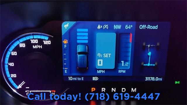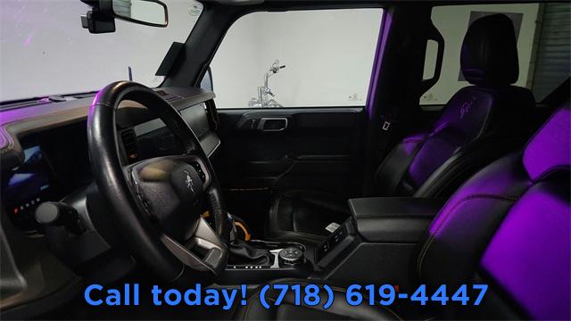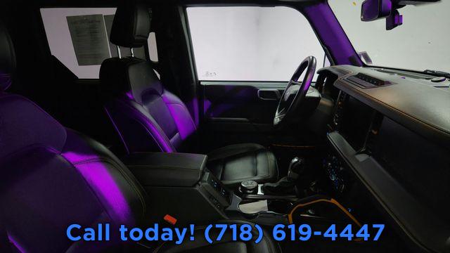 Equipment Group 334A High/Lux Package, Sasquatch Package w/Non Beadlock Capable Wheels, 10 Speakers w/Subwoofer, 7 Speakers, AM/FM radio: SiriusXM with 360L, AM/FM Stereo, Radio data system, Radio: B&O Sound System by Bang & Olufsen, SiriusXM Radio w/360L, SYNC 4, Air Conditioning, Dual-Zone Electronic Automatic Temperature Control, Power Outlet - Back Side of Center Floor Console, Power steering, Power windows, Remote keyless entry, Steering wheel mounted audio controls, Universal Garage Door Opener, Position-Sensitive Bilstein Shock Absorbers, Traction control, 2-Door Intelligent Access w/Lock/Unlock, 4-Wheel Disc Brakes, ABS brakes, Dual front impact airbags, Dual front side impact airbags, Emergency communication system: 911 Assist, Front anti-roll bar, Front wheel independent suspension, Integrated roll-over protection, Low tire pressure warning, Occupant sensing airbag, Overhead airbag, BLIS Blind Spot Information System, Brake assist, Electronic Stability Control, Exterior Parking Camera Rear, Front Parking Sensors, Rear Parking Sensors, Rear-View Camera, Auto High-beam Headlights, Delay-off headlights, Fully automatic headlights, Panic alarm, Security system, Adaptive Cruise Control, Speed control, Auto High-Beam Headlamps, Carbonized Gray Molded-In-Clr Hard Top w/o Headliner, Front License Plate Bracket, Front Row Top Panels Storage Bag, Heated door mirrors, High Clearance Fender Flares, High Clearance Suspension, Power door mirrors, Sideview Mirrors, 360-Degree Camera, Additional Sound Deadening, Ambient Footwell Lighting, Auto-Dimming Interior Rear-View Mirror, Compass, Dr & Pass Illuminated Sliding Visor Vanity Mirrors, Driver door bin, Driver vanity mirror, Dual Smart Charging USB Ports, Evasive Steering Assist, Front & Rear Floor Liners w/o Carpet Floor Mats, Front reading lights, Heated Steering Wheel, Illuminated entry, Information on Demand Panel, Lane-Keeping System, Leather Shift Knob, Marine Grade Vinyl Bucket Seats, Outside temperature display, Overhead console, Passenger vanity mirror, Pre-Collision Assist w/Automatic Emergency Braking, Tachometer, Telescoping steering wheel, Tilt steering wheel, Trip computer, Voltmeter, Wireless Charging Pad, Front Bucket Seats, Front Center Armrest, Front Row Heated Seats, Split folding rear seat, Passenger door bin, Alloy wheels, Wheels: 17" Carbonized Gray-Painted Alloy, Wheels: 17" Machined Carbonized Aluminum, Rear-Window Defroster & Washer, Variably intermittent wipers, 4.7 Final Drive Ratio