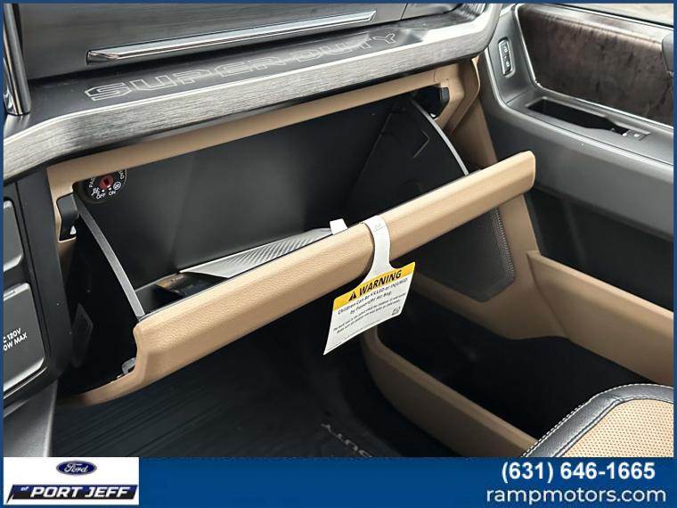 LARIAT trim. CARFAX 1-Owner. Heated/Cooled Leather Seats, NAV, Onboard Communications System, iPod/MP3 Input, Heated Rear Seat, 4x4, Tow Hitch, LARIAT ULTIMATE PACKAGE, MAX RECLINE SEATS, TRANSMISSION: TORQSHIFT 10-SPEED AUTO... <br /<br /KEY FEATURES INCLUDE<br /Leather Seats, Navigation, 4x4, Heated Driver Seat, Heated Rear Seat, Cooled Driver Seat, iPod/MP3 Input, Onboard Communications System, Trailer Hitch, Remote Engine Start. MP3 Player, Keyless Entry, Privacy Glass, Steering Wheel Controls. Ford LARIAT with Darkened Bronze exterior and Baja interior features a 8 Cylinder Engine with 430 HP at 5500 RPM*. <br /<br /OPTION PACKAGES<br /LARIAT ULTIMATE PACKAGE Wireless Charging Pad, Front Sensing System, Tailgate Step & Handle, Intelligent Adaptive Cruise Control w/Stop-and-Go, lane centering and speed sign recognition, Radio: B&O Unleashed Sound System by Bang & Olufsen, HD Radio w/14 speakers including subwoofer, Pro Trailer Hitch Assist, Ford Co-Pilot 360 2.0, rear view camera, reverse brake assist and reverse sensing system, Lane-Keeping System, lane-keeping alert, lane-keeping aid and driver alert, Pre-Collision Assist, Automatic Emergency Braking (AEB), pedestrian detection, forward collision warning, dynamic brake support and intersection assist, Post-Collision Braking, Automatic High Beam, BLIS w/Cross-Traffic Alert, trailer coverage, Upfitter Switches (6), Located in overhead console, 4-Way Adjustable Headrests, TREMOR OFF-ROAD PACKAGE unique front springs - ride height increase, rear electronic locking differential, front limited slip differential, performance front and rear shock absorbers, unique front air dams w/approach angle improvement, transfer case and axle water fording vent tubes, rock crawl mode and trail control mode, Tremor Off-Road Decal, Transfer Case & Fuel Tank Skid Plates, Tires: LT285/75R18E BSW Automatic Transmission, Off-road, LT285/75R18E BSW Spare Tire, Textured Matte Finish Off-Road Running Boards, Conventional Road Spare Wheel, Wheels: 18 Machined & Painted Aluminum, Lane Departure Warning, BLACK APPEARANCE PACKAGE front and rear black Ford ovals, box side decal (4x4, FX4 or Tremor) and ebony black fender vent surround dark fender badge, Rear Wheel Well Liners (Pre-Installed), Ebony Black Painted Front Grille Bars, Ebony Black Painted Mirror Caps, Tough Bed Spray-In Bedliner, tailgate-guard, black box bed tie-down hooks and black bed attachment bolts, Body Color Front & Rear Bumpers, Wheels: 20 Machined & Ebony Black High Gloss, Black premium painted aluminum, gloss black hub cover/center ornament, Tires: LT275/65Rx20E BSW Automatic Transmission, Spare may not be the same as road tire, 6 Ebony Black Angular Running Boards, MAX RECLINE SEATS 10-way power driver and 8-way power passenger and 4-way headrests, TRANSMISSION: TORQSHIFT 10-SPEED AUTOMATIC SelectShift and selectable drive modes: normal, eco, slippery roads, tow/haul and off-road (STD), ENGINE: 7.3L 2V DEVCT NA PFI V8 GAS (STD). <br /<br /Horsepower calculations based on trim engine configuration. Please confirm the accuracy of the included equipment by calling us prior to purchase. <br /