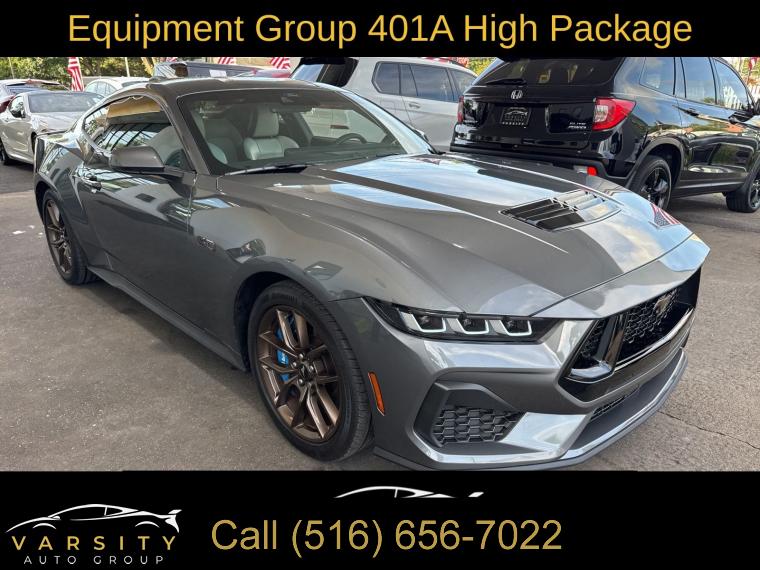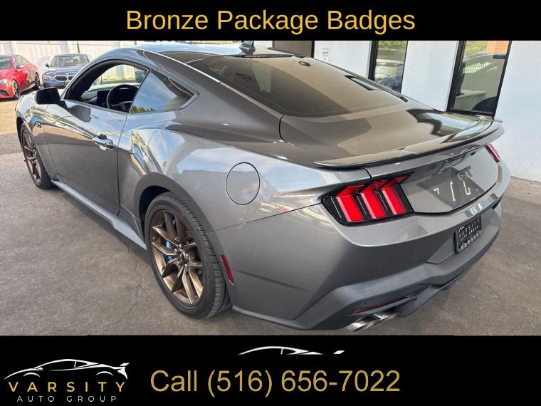 The Price you See, is the Price You Pay!!!, 19" Branded Brake System w/Performance Linings, 4-Wheel Disc Brakes, ABS brakes, Active Anti-Theft System, Air Conditioning, AM/FM Stereo, Auto High-beam Headlights, Automatic temperature control, B&O Sound System by Bang & Olufsen, Brake assist, Bronze Appearance Package, Bronze Package Badges, Bumpers: body-color, Cargo Net Kit (DIO), Connected Built-In Navigation, Delay-off headlights, Driver door bin, Driver vanity mirror, Dual front impact airbags, Electronic Stability Control, Emergency communication system: 911 Assist, Equipment Group 401A High Package, Exterior Parking Camera Rear, Ford Co-Pilot360 Assist+, Four wheel independent suspension, Front anti-roll bar, Front Bucket Seats, Front Center Armrest, Front reading lights, Fully automatic headlights, Grabber Blue Brake Calipers w/White Logo, HD Radio, Illuminated Door-Sill Scuff Plates, Integrated Turn Signals, Knee airbag, Leather Shift Knob, Leather steering wheel, Leather-Trimmed Bucket Seats w/Color Accents, Locking Center Console, Low tire pressure warning, Memory Driver Seat & Mirrors, Outside temperature display, Overhead console, Panic alarm, Passenger door bin, Passenger vanity mirror, Power door mirrors, Power steering, Power windows, Pre-Collision Assist w/Automatic Emergency Braking, Rear Parking Sensors, Rear window defroster, Remote keyless entry, Security Package, SiriusXM w/360L, Speed control, Speed-sensing steering, Split folding rear seat, Spoiler, SYNC 4.0 QNX, Telescoping steering wheel, Tilt steering wheel, Traction control, Trip computer, Voltmeter, Wheel Locking Kit. Carbonized Gray Metallic 2024 Ford Mustang GT Premium RWD 10-Speed Automatic 5.0L V8 Ti-VCT