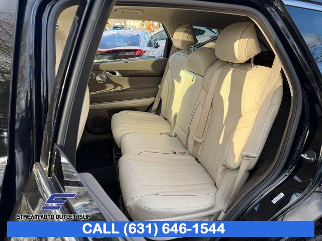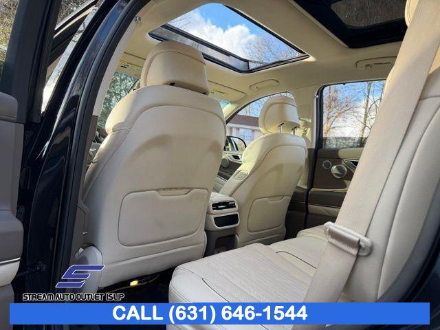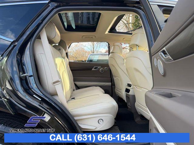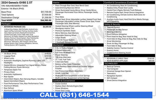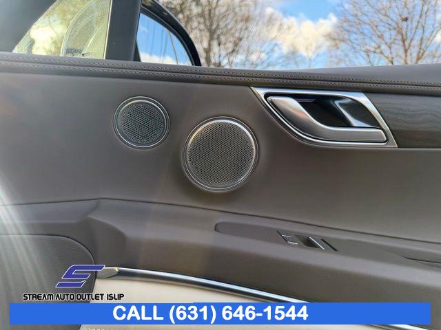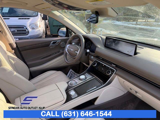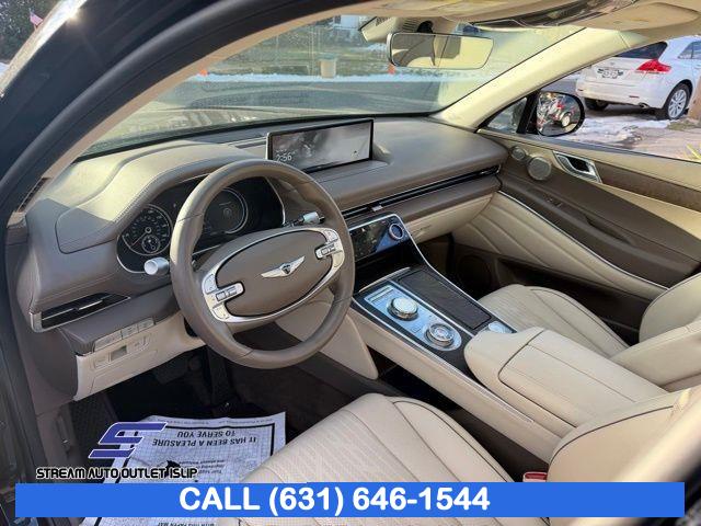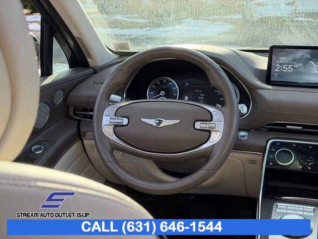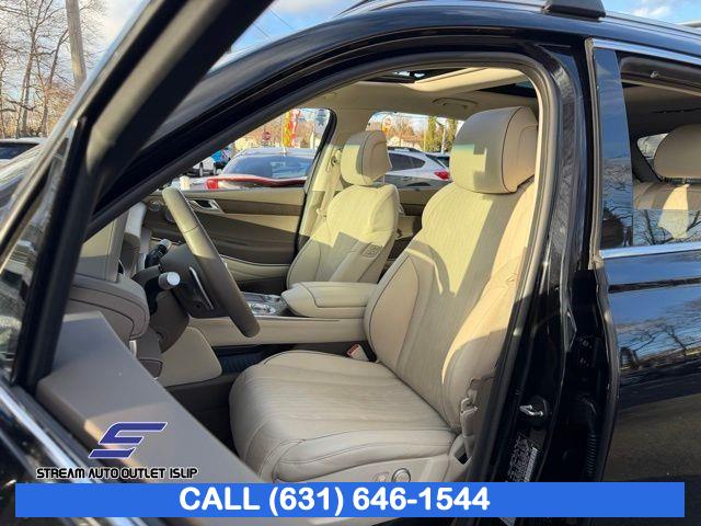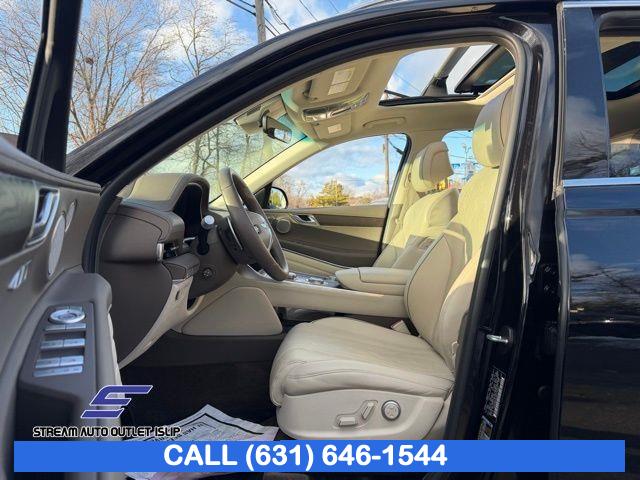 Navigation System, Option Group 02, Advanced Package, 12 Speakers, AM/FM radio: SiriusXM, Radio data system, Radio: AM/FM/SiriusXM/HD Lexicon Prem Audio System, Radio:14.5" Navigation System w/AM/FM/HD Radio, Air Conditioning, Automatic temperature control, Front dual zone A/C, Rear air conditioning, Rear window defroster, Memory seat, Power driver seat, Power steering, Power windows, Remote keyless entry, Steering wheel memory, Steering wheel mounted audio controls, Auto-leveling suspension, Four wheel independent suspension, Speed-sensing steering, Traction control, 4-Wheel Disc Brakes, ABS brakes, Anti-whiplash front head restraints, Dual front impact airbags, Dual front side impact airbags, Emergency communication system: Genesis Connected Services, Front anti-roll bar, Knee airbag, Low tire pressure warning, Monobloc Front Brakes, Occupant sensing airbag, Overhead airbag, Rear anti-roll bar, Rear side impact airbag, Silver Brake Calipers, Panoramic Sunroof, Rear Bumper Applique, Power Liftgate, Brake assist, Electronic Stability Control, Exterior Parking Camera Rear, Auto High-beam Headlights, Delay-off headlights, Fully automatic headlights, Panic alarm, Security system, Speed control, Auto-dimming door mirrors, Bumpers: body-color, Heated door mirrors, Power door mirrors, Remote Smart Parking Assist, Reverse Parking Collision-Avoidance Assist, Spoiler, Turn signal indicator mirrors, Android Auto & Apple CarPlay, Auto tilt-away steering wheel, Auto-dimming Rear-View mirror, Blind-Spot View Monitor, Compass, Driver door bin, Driver vanity mirror, Front reading lights, Garage door transmitter: HomeLink, Genuine wood console insert, Genuine wood dashboard insert, Genuine wood door panel insert, Heated steering wheel, Illuminated entry, Leather steering wheel, Outside temperature display, Overhead console, Passenger vanity mirror, Rear reading lights, Rear seat center armrest, Surround View Monitor, Tachometer, Telescoping steering wheel, Tilt steering wheel, Trip computer, Front Bucket Seats, Front Center Armrest, Heated Front Bucket Seats, Heated front seats, Leather Seating Surfaces, Leatherette Seating Surfaces, Power passenger seat, Split folding rear seat, Ventilated Front Seats, Passenger door bin, Reversible Cargo Tray, Roof Rack Cross Bars, Alloy wheels, Wheel Locks, Wheels: 19" x 8.5J Medium Metallic Gray Alloy, Wheels: 20" x 8.5J Medium Metallic Gray Alloy, Rain sensing wipers, Rear window wiper, Speed-Sensitive Wipers, Variably intermittent wipers, 4.363 Axle Ratio