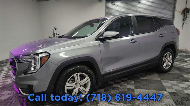 Preferred Equipment Group 3SA, 2 USB Data Ports w/Auxiliary Input Jack, 6 Speakers, 6-Speaker Audio System Feature, AM/FM radio: SiriusXM, Radio data system, Radio: GMC Infotainment Audio System w/7" Display, SiriusXM, Air Conditioning, Automatic temperature control, Rear window defroster, Bluetooth® For Phone, Power steering, Power windows, Remote keyless entry, Steering wheel mounted audio controls, Four wheel independent suspension, Speed-sensing steering, Traction control, 4-Wheel Disc Brakes, ABS brakes, Dual front impact airbags, Dual front side impact airbags, Emergency communication system: OnStar and GMC connected services capable, Front anti-roll bar, Low tire pressure warning, Occupant sensing airbag, Overhead airbag, Rear anti-roll bar, Brake assist, Electronic Stability Control, Auto High-beam Headlights, Delay-off headlights, Fully automatic headlights, Panic alarm, Security system, Speed control, Bumpers: body-color, Heated door mirrors, Power door mirrors, Spoiler, 4.2" Multi-Color Driver Information Screen, Auto-dimming Rear-View mirror, Compass, Driver door bin, Driver vanity mirror, Front reading lights, Illuminated entry, Outside temperature display, Overhead console, Passenger vanity mirror, Premium Cloth Seat Trim, Rear seat center armrest, Tachometer, Telescoping steering wheel, Tilt steering wheel, Trip computer, Wireless Apple CarPlay/Wireless Android Auto, 4-Way Manual Driver's Seat, 4-Way Manual Front Passenger Seat, Front Bucket Seats, Front Center Armrest, Split folding rear seat, Passenger door bin, Alloy wheels, Wheels: 17" x 7" Silver Painted Aluminum, Rear window wiper, Variably intermittent wipers, 3.47 Final Drive Axle Ratio