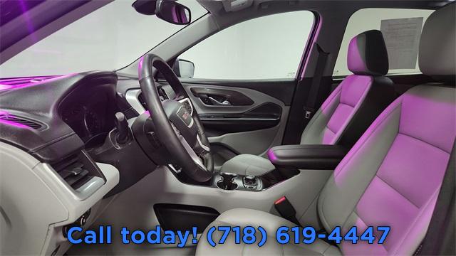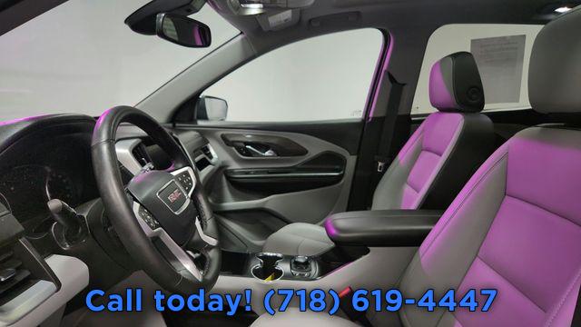 Preferred Equipment Group 4SA, 2 USB Data Ports w/SD Card Reader, 6 Speakers, 6-Speaker Audio System Feature, AM/FM radio: SiriusXM, Radio data system, Radio: GMC Infotainment Audio System w/8" Display, SiriusXM, Air Conditioning, Automatic temperature control, Front dual zone A/C, Rear window defroster, 6-Way Power Front Passenger Seat, 8-Way Power Driver Seat Adjuster, Bluetooth® For Phone, Memory seat, Power driver seat, Power steering, Power windows, Remote keyless entry, Steering wheel mounted audio controls, Four wheel independent suspension, Speed-sensing steering, Traction control, 4-Wheel Disc Brakes, ABS brakes, Dual front impact airbags, Dual front side impact airbags, Emergency communication system: OnStar and GMC connected services capable, Front anti-roll bar, Low tire pressure warning, Occupant sensing airbag, Overhead airbag, Rear anti-roll bar, Skyscape Power Sunroof w/Power Sunscreen, Power Liftgate, Brake assist, Electronic Stability Control, Auto High-beam Headlights, Delay-off headlights, Front fog lights, Fully automatic headlights, Panic alarm, Security system, Speed control, Bumpers: body-color, Heated door mirrors, Power door mirrors, Roof rack: rails only, Spoiler, Turn signal indicator mirrors, 2 USB Data Ports, Auto-dimming Rear-View mirror, Compass, Driver door bin, Driver vanity mirror, Front reading lights, Garage door transmitter, Heated steering wheel, Illuminated entry, Outside temperature display, Overhead console, Passenger vanity mirror, Rear seat center armrest, Tachometer, Telescoping steering wheel, Tilt steering wheel, Trip computer, Wireless Apple CarPlay/Wireless Android Auto, Driver & Front Passenger Heated Seats, Front Bucket Seats, Front Center Armrest, Front Passenger 2-Way Power Lumbar, Heated front seats, Perforated Leather-Appointed Seat Trim, Power Driver Lumbar Control, Power passenger seat, Split folding rear seat, Passenger door bin, Alloy wheels, Wheels: 18" x 7" Silver Painted Aluminum, Rear window wiper, Variably intermittent wipers, 3.47 Final Drive Axle Ratio