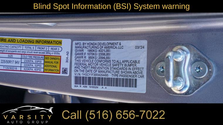 For more information on this 2024 Honda Accord, please call Varsity Autos Group at (516) 656-7022 or with the contact form on this page. This vehicle's vin number is 1HGCY1F35RA054495 and is recorded as being in stock at Varsity Autos Group at 500 Old Country Rd in Westbury. See all cars from this dealership.
