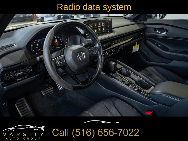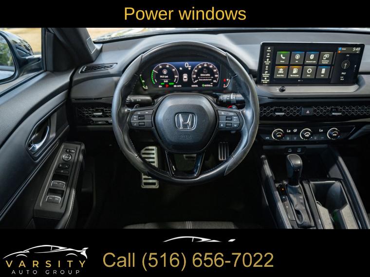 The Price you See, is the Price You Pay!!!, Urban Gray Pearl, Hybrid, 1 Owner, Clean CARFAX, 2.0L 16V DOHC, 4-Wheel Disc Brakes, 8 Speakers, ABS brakes, Adaptive Cruise Control: Adaptive Cruise Control (ACC) with Low-Speed Follow, Air Conditioning, Alloy wheels, AM/FM radio, Apple CarPlay/Android Auto, Auto High-beam Headlights, Automatic temperature control, Blind Spot Information (BSI) System warning, Brake assist, Bumpers: body-color, Compass, Delay-off headlights, Driver door bin, Driver vanity mirror, Dual front impact airbags, Dual front side impact airbags, Electronic Stability Control, Emergency communication system: HondaLink, Exterior Parking Camera Rear, Fabric Seat Trim, Four wheel independent suspension, Front anti-roll bar, Front Bucket Seats, Front Center Armrest, Front dual zone A/C, Front reading lights, Fully automatic headlights, Illuminated entry, Knee airbag, Lane departure: Lane Keeping Assist System (LKAS) active, Leather Shift Knob, Leather steering wheel, Low tire pressure warning, Occupant sensing airbag, Outside temperature display, Overhead airbag, Overhead console, Panic alarm, Passenger door bin, Passenger vanity mirror, Power door mirrors, Power driver seat, Power moonroof, Power steering, Power windows, Radio data system, Radio: 180-Watt Audio System, Rear anti-roll bar, Rear seat center armrest, Rear side impact airbag, Rear window defroster, Remote keyless entry, Security system, Speed control, Speed-sensing steering, Speed-Sensitive Wipers, Split folding rear seat, Spoiler, Steering wheel mounted audio controls, Telescoping steering wheel, Tilt steering wheel, Traction control, Trip computer, Variably intermittent wipers, Wheels: 19" x 8.5J Berlina Black. Urban Gray Pearl 2024 Honda Accord Hybrid Sport FWD eCVT 2.0L 16V DOHC Odometer is 9235 miles below market average! 46/41 City/Highway MPG