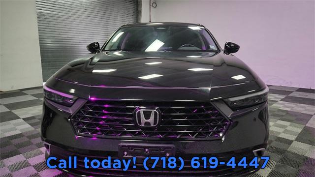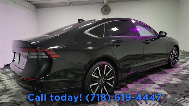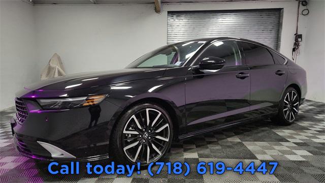 CARFAX One-Owner. 2024 Honda Accord Hybrid Touring 2.0L 16V DOHC, AM/FM radio, Auto High-beam Headlights, Automatic temperature control, Blind Spot Information (BSI) System warning, Bose Premium Sound System, Exterior Parking Camera Rear, Front dual zone A/C, Fully automatic headlights, Lane departure: Lane Keeping Assist System (LKAS) active, Navigation System, Power moonroof, Remote keyless entry, Steering wheel mounted audio controls.